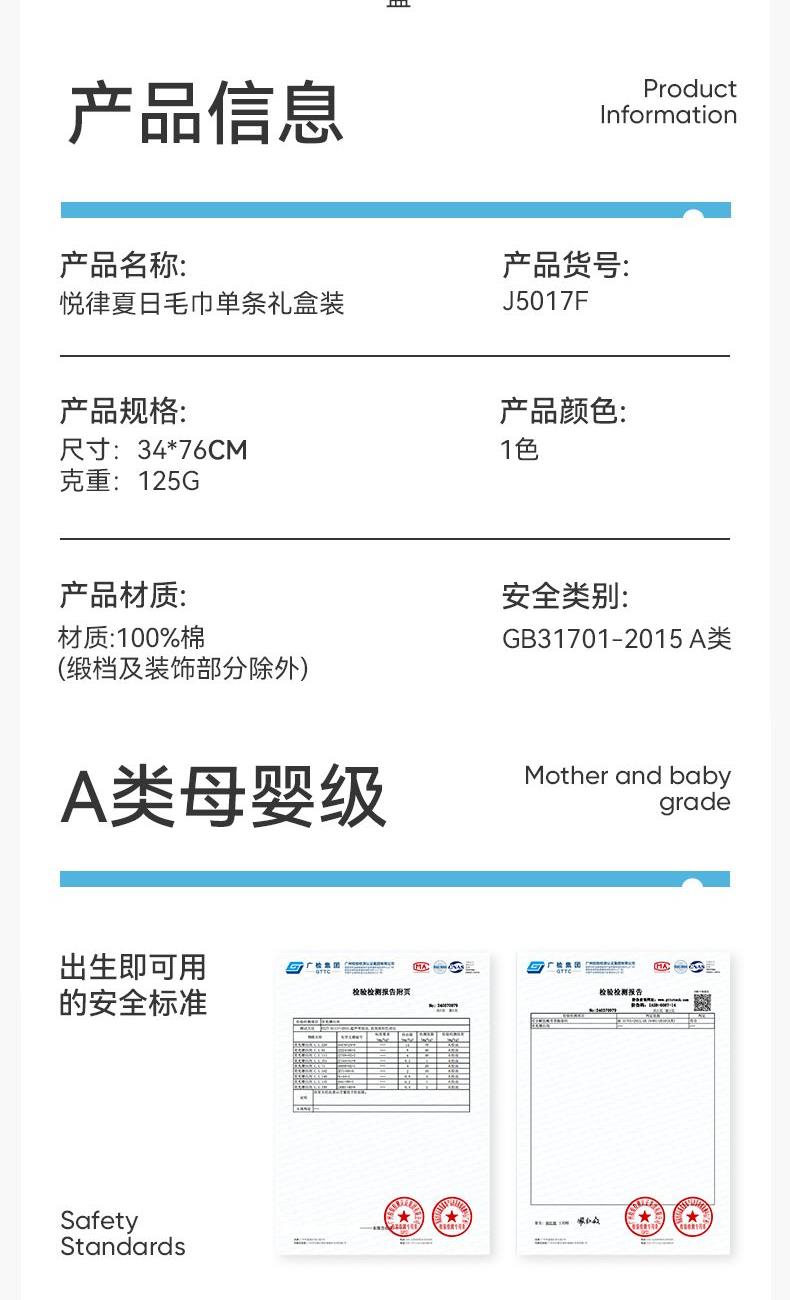 • 洁玉悦律夏日毛巾单条装礼盒J5017F