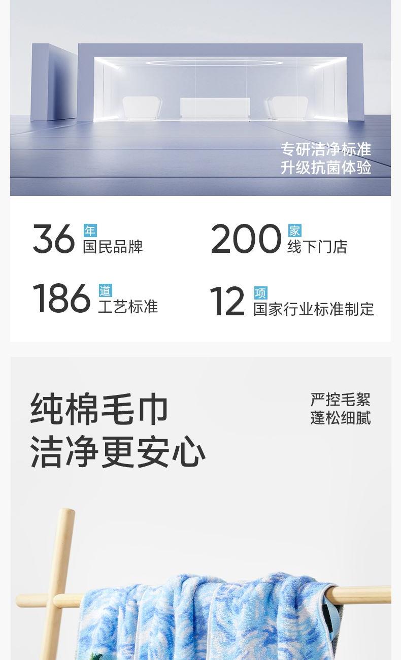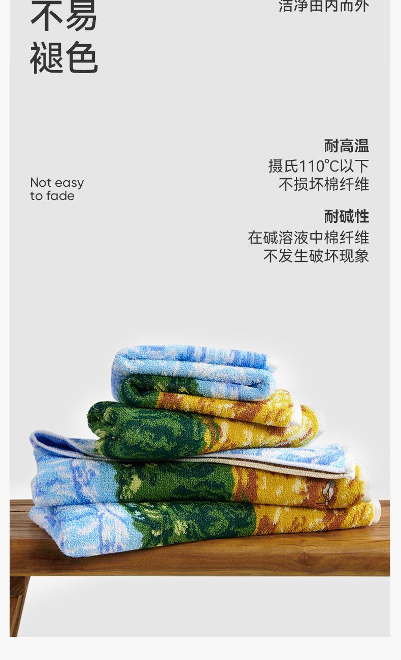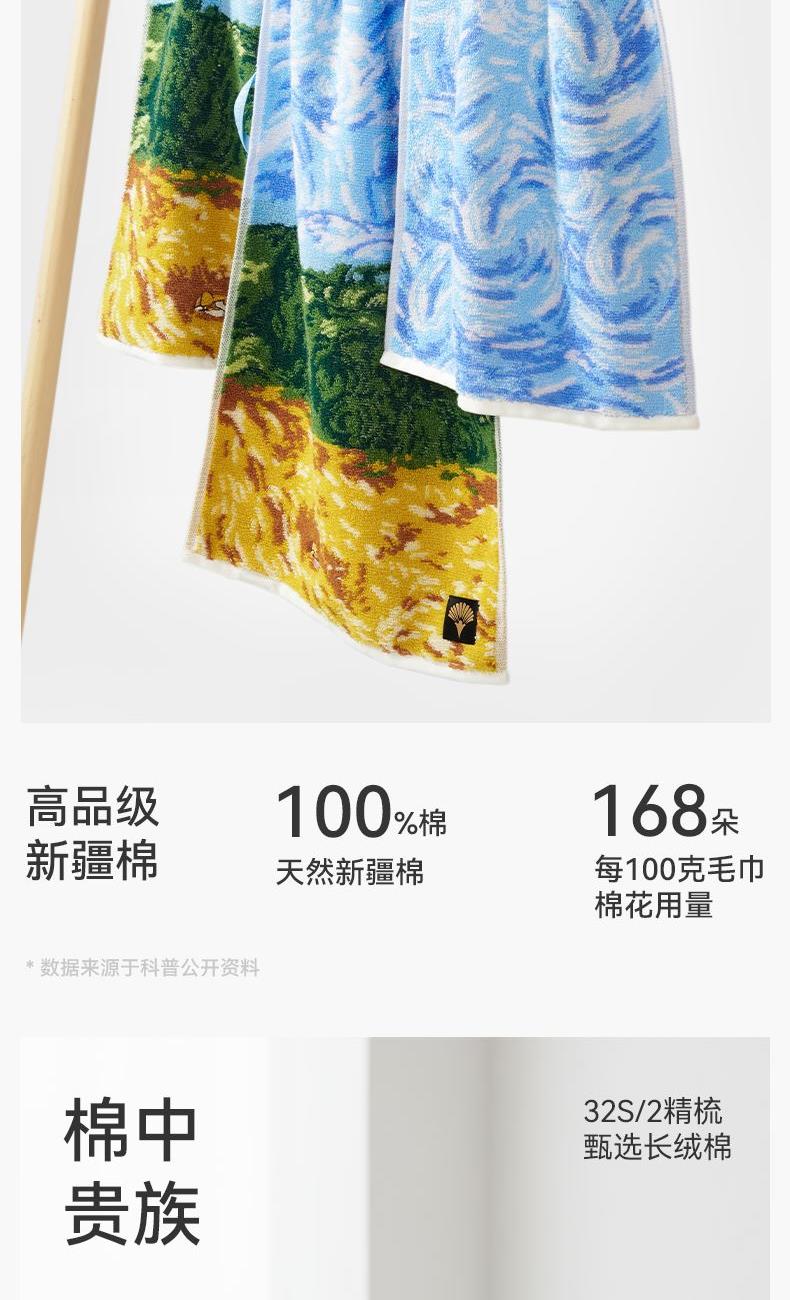 规格:34cmx76cm*1条 重量:125g/条*1条 颜色:蓝 材质:32S/2精梳(30%长绒棉) 包装内容:悦律夏日毛巾 1条 1、创意说明:伟大利他的艺术家用诗意和思辨去诠释故事。洁玉将大师风格浸润于柔软织物,轻松触摸艺术的自由与洒脱。以毛圈为画笔勾勒温柔的点线面,融入到“肌肤之亲”的每个日常,让艺术不再遥不可及。 2、甄选优质新疆长绒棉,光滑柔软,质感细腻,毛羽少,强力高,具有独特的柔软手感和良好的吸水性,色泽亮丽,久洗不褪色,常洗如新。 2、采用精梳工艺,纺纱过程中移除大部分的粗纤维和杂质,留下长而整齐的棉纤维,纺出的纱细腻均匀,使产品更加的蓬松,手感舒适,更快吸水。