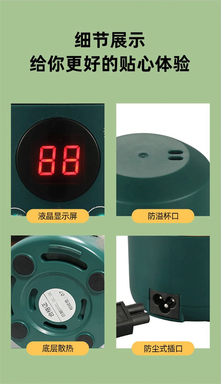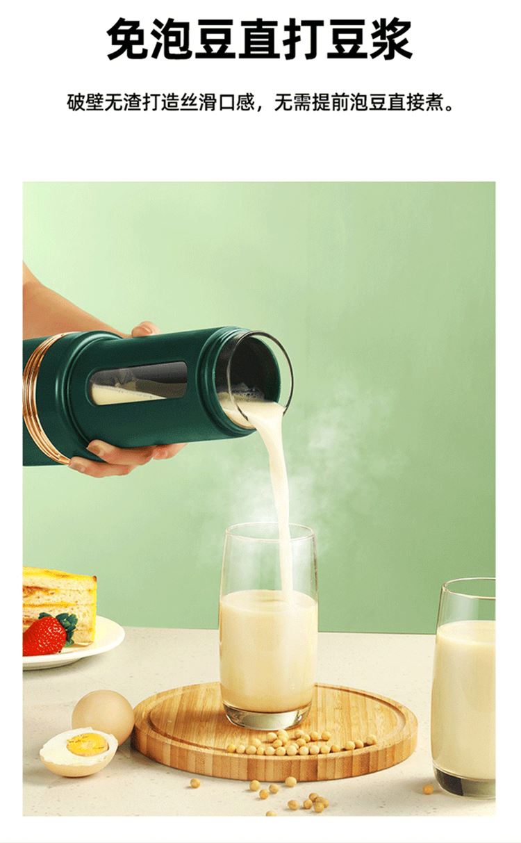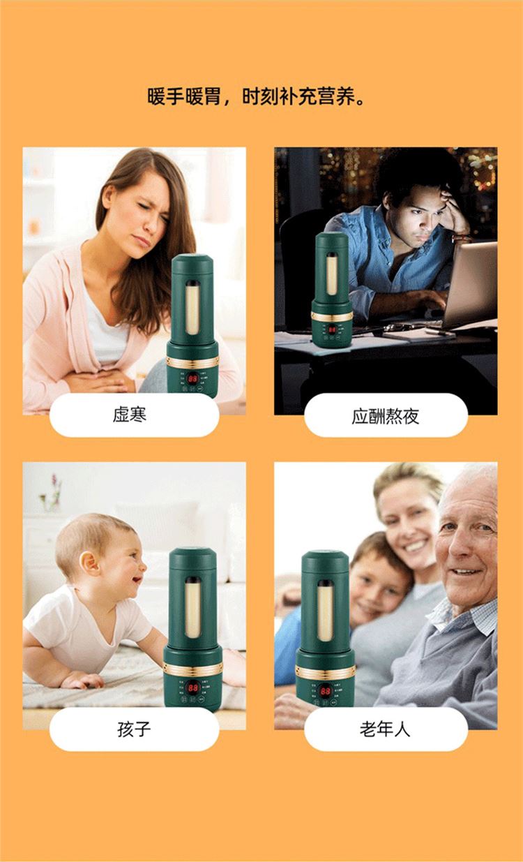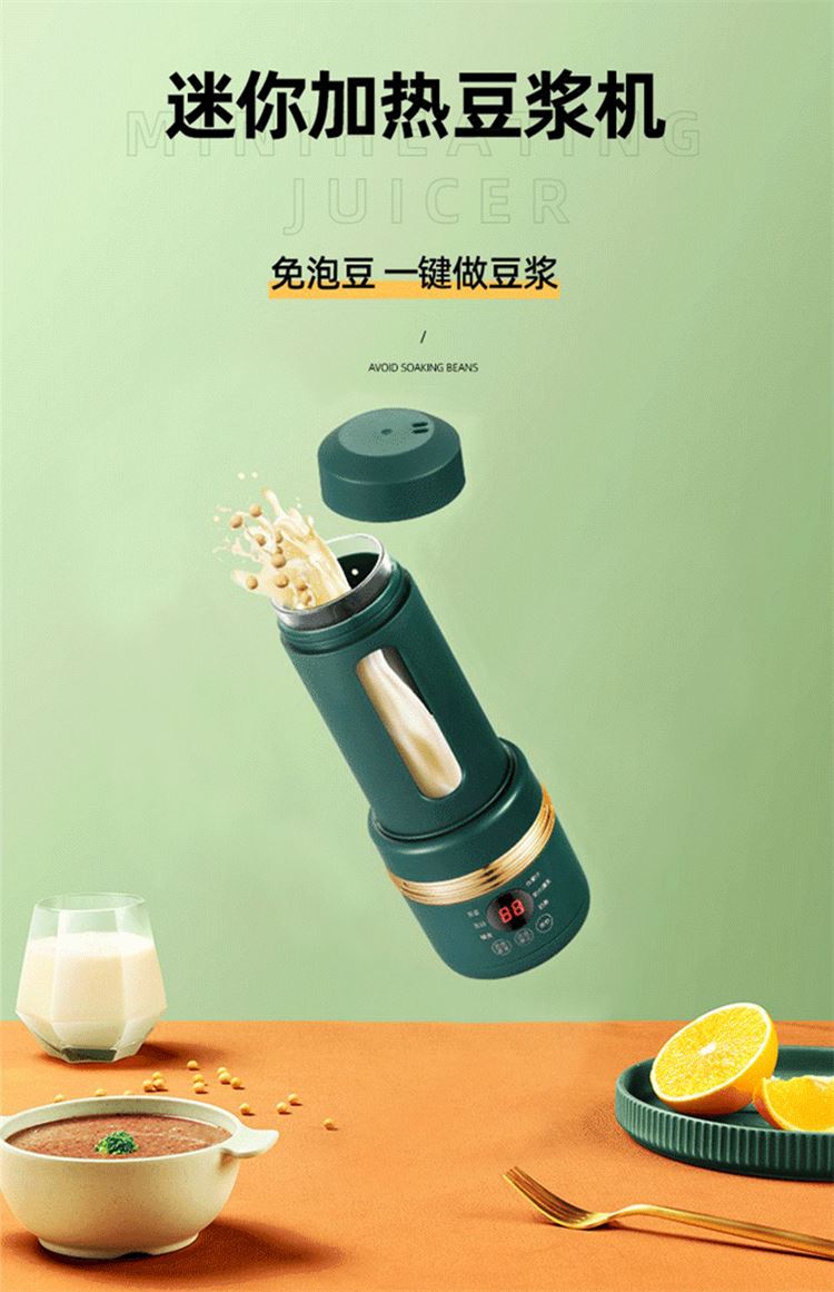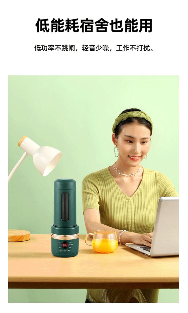 搅拌功率:150W 额定频率:50HZ 加热功率:300W 🌟 全龄适配·真正多功能 大人宝宝双向兼容,既是宝宝专属辅食机,也能满足全家日常需求,一台搞定辅食、豆浆、果汁等多种料理,性价比拉满。 ⚡ 高效省时·全自动免看管 25分钟速成豆浆,免泡豆直打无需提前准备,洗脸刷牙的功夫就能做好营养早餐;12小时智能预约功能,睡前设定,晨起直接享用,简化时间成本。 破壁口感·冷热双用更贴心 旋风六页精钢刀片+多段曲线智能熬煮,研磨充分破壁无渣,口感丝滑细腻;冷热两用设计,冬天可加热至45℃暖胃不烫口,夏天鲜榨冰饮,四季适配。 低耗轻音·场景无限制 低功率设计,宿舍使用不跳闸,节能又安全;轻音运行噪音小,工作时不打扰宝宝睡眠、家人休息,居家、宿舍都适用。 ✨ 小巧便捷·清洁无忧 400ml容量,适配1-2人私享,迷你小型易收纳、方便携带;可拆卸部件一冲即净,搭配液晶显示屏、防溢杯口、底层散热、防尘插口,细节拉满更省心。