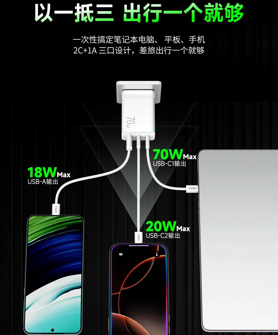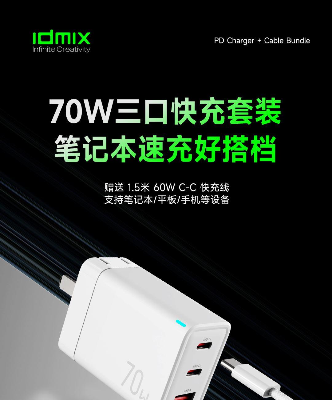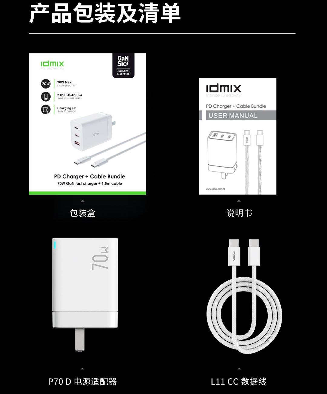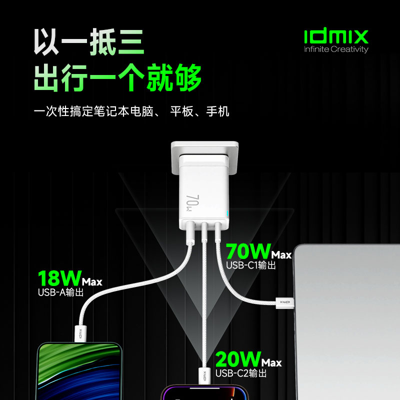 • IDMIX70W氮化镓充电器套装P70D