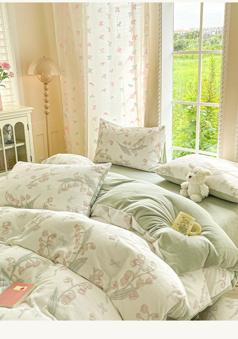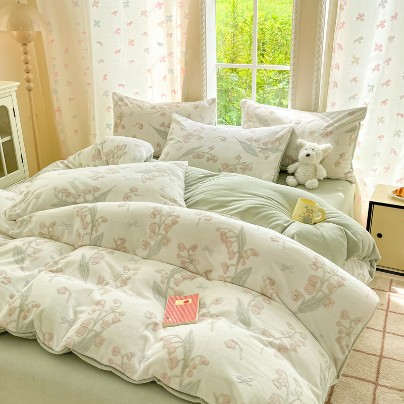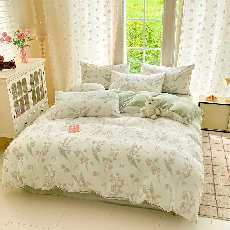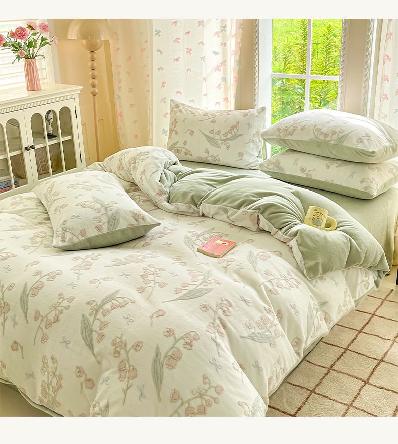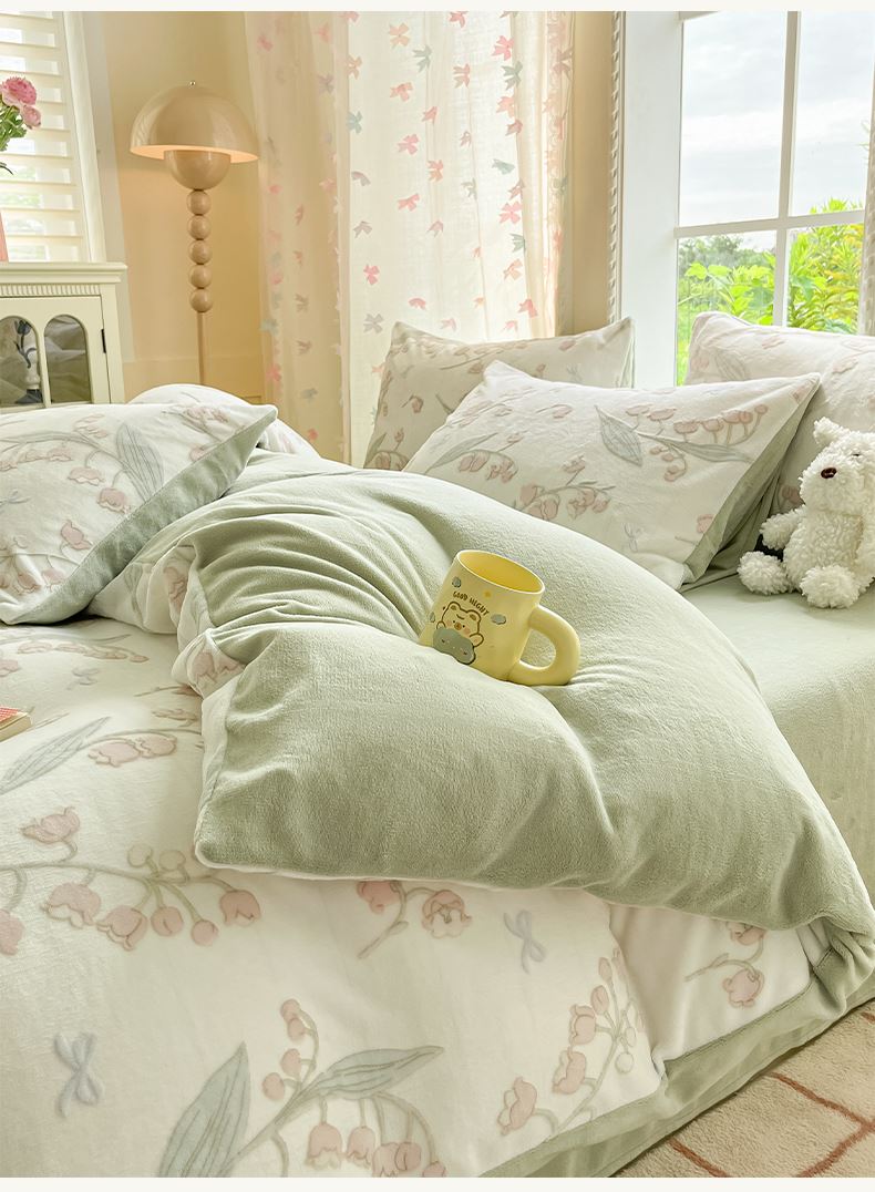 百丽安娜浮雕绒四件套--舞蝶玲珑绿