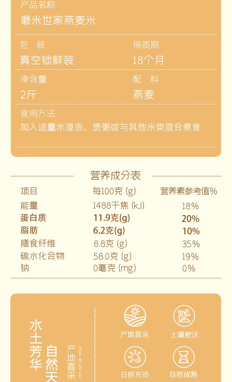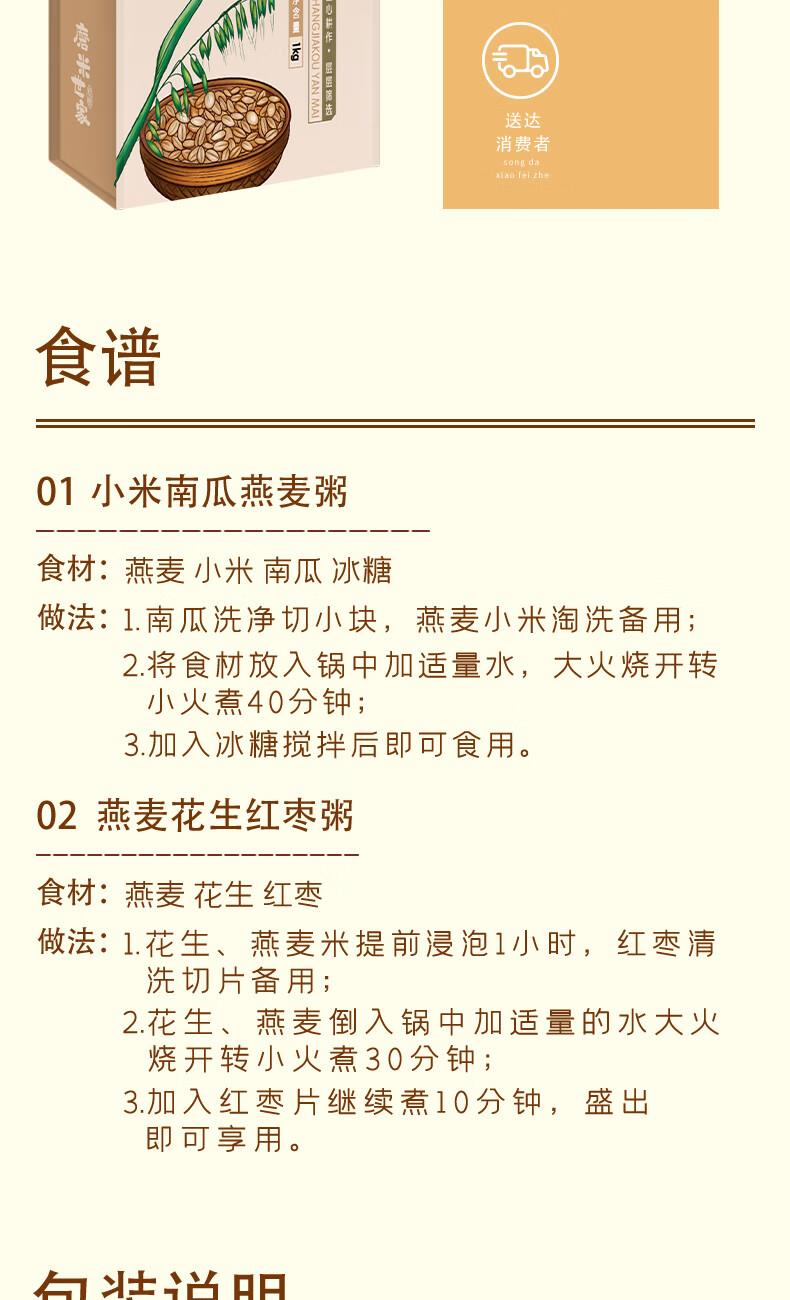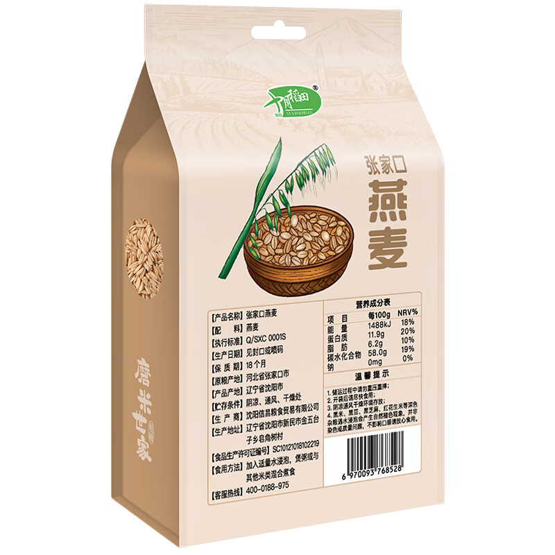 十月稻田 磨米世家张家口燕麦 规格:1kg 保质期:18个月 外形纤长,饱满均匀,麦香浓郁