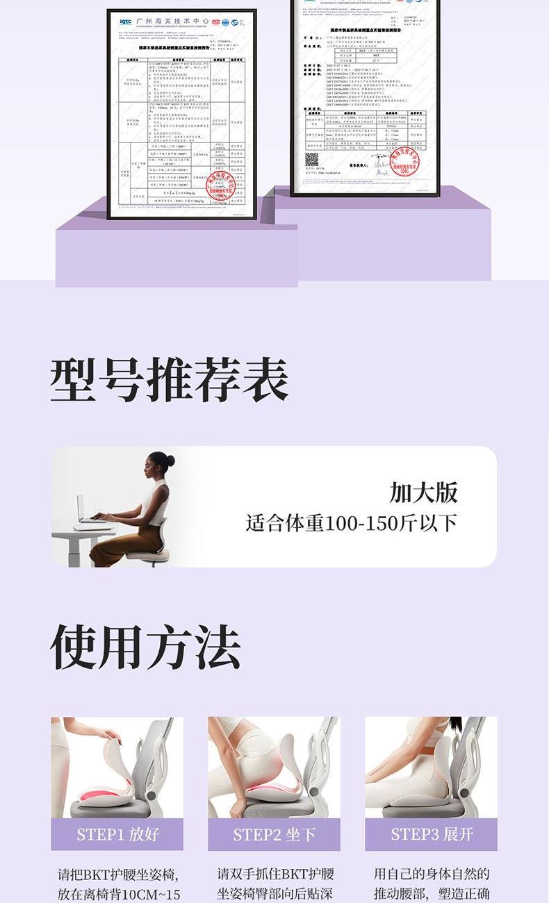 产品尺寸:422*362*310mm 产品重量:约930g 产品材质:PP合成树脂/布(聚醋纤维) 适合体重:体重120斤以上 坐套面料:聚酯纤维 坐套尺寸:415*320mm 适宜人群:坐姿不正确人群,上班族、学生、教师等久坐人群,有跷二郎腿习惯人群, 希望拥有正确坐姿人群,加宽加大版更适合体型偏大人群。