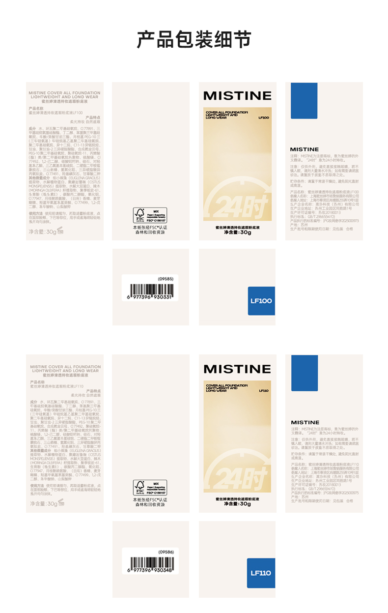 • 蜜丝婷清透持妆遮瑕蓝盾粉底液NN120自然暖调色