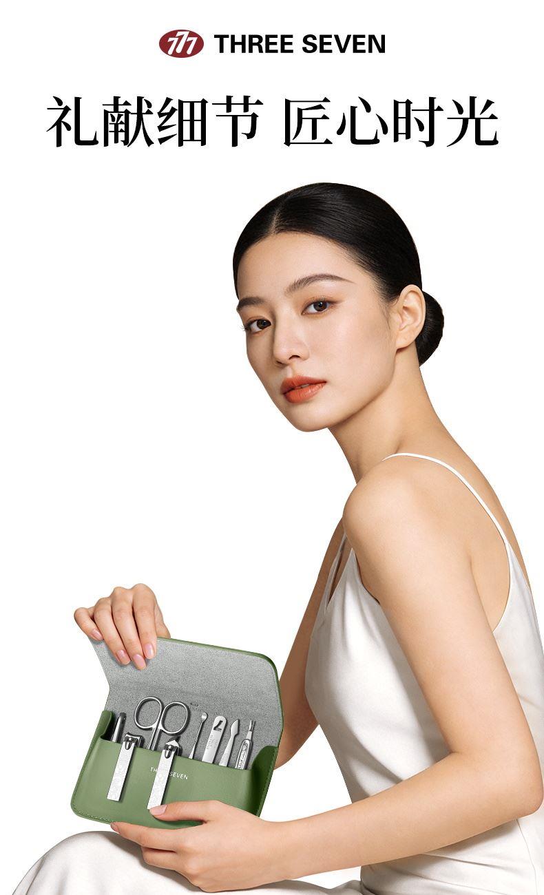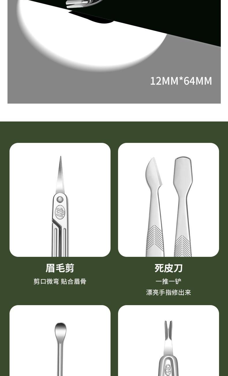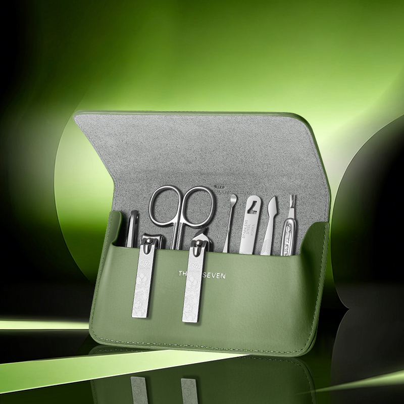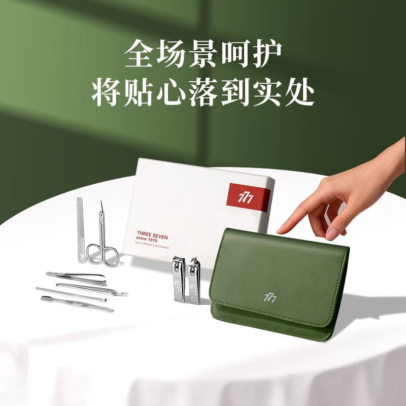 品 牌:THREE SEVEN/777 材 质:优质碳钢+PU皮套 规 格:106*142mm 产品颜色:绿色 套装内容:8件套(眉夹、中号平口指甲刀、中号斜口指甲刀、眉剪、耳挖、锉片、死皮推、死皮铲)