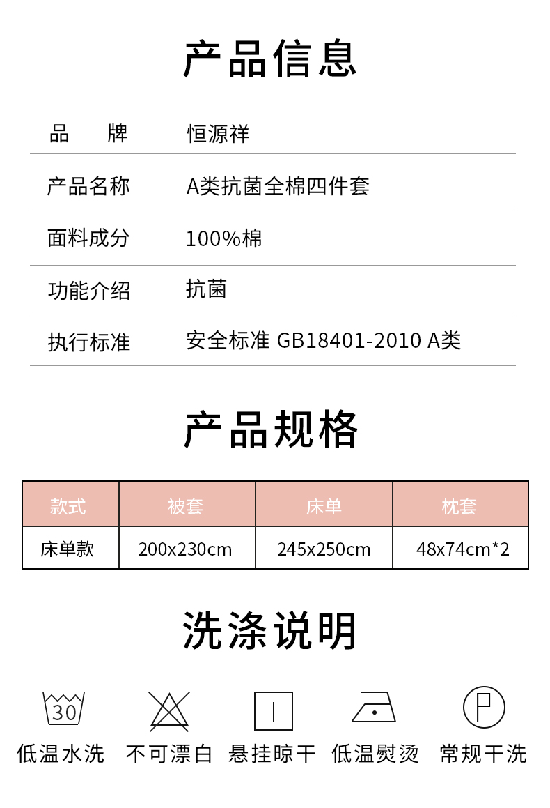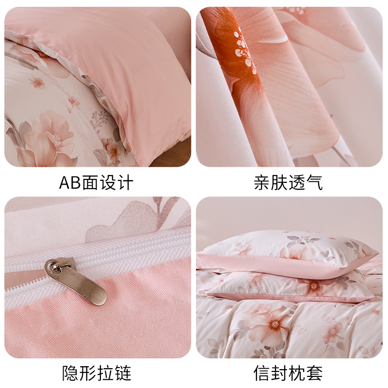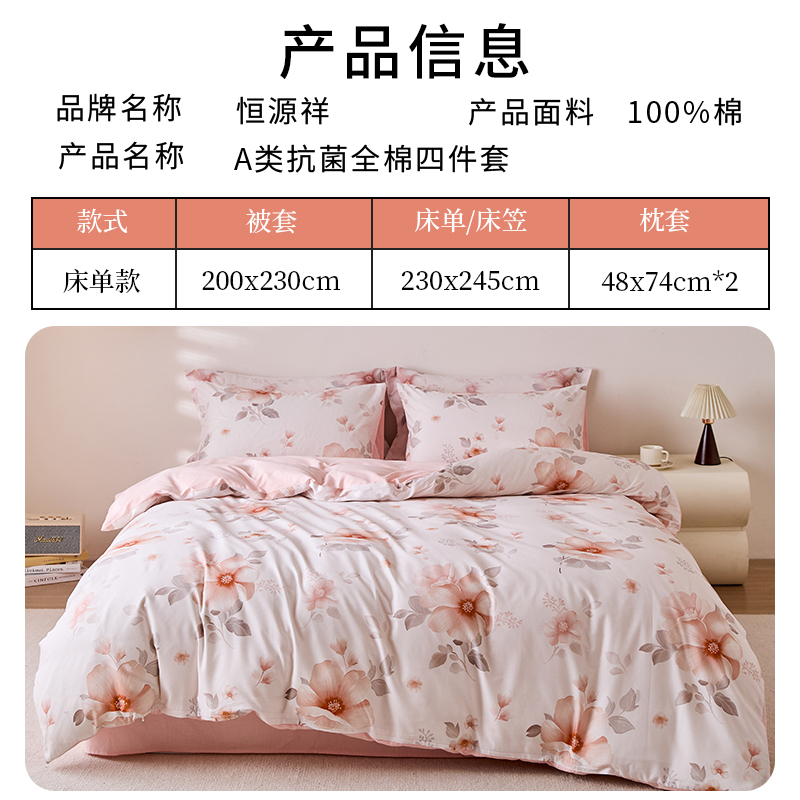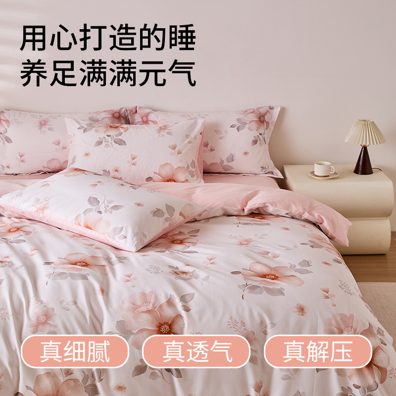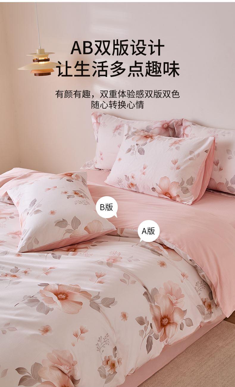 恒源祥A类全棉四件套-落樱微暖HYX458TJ