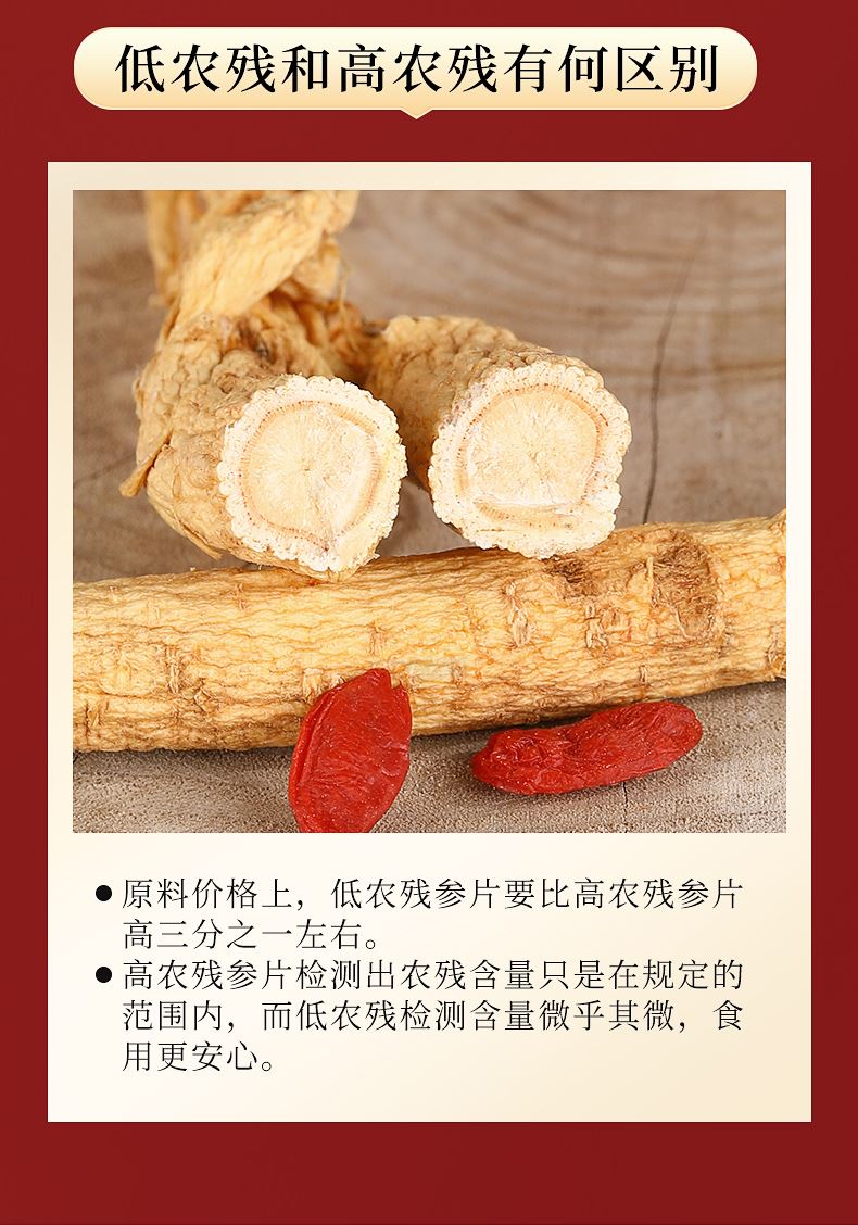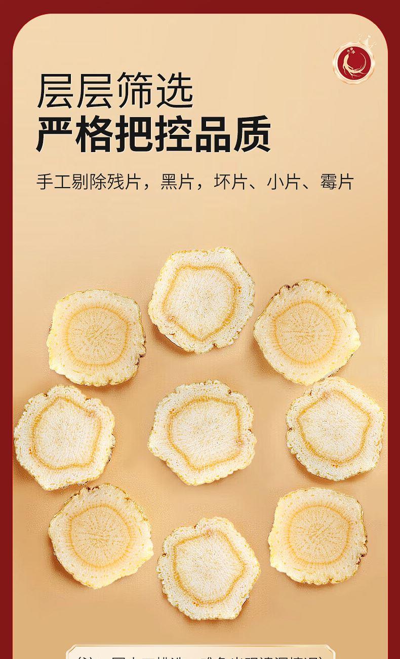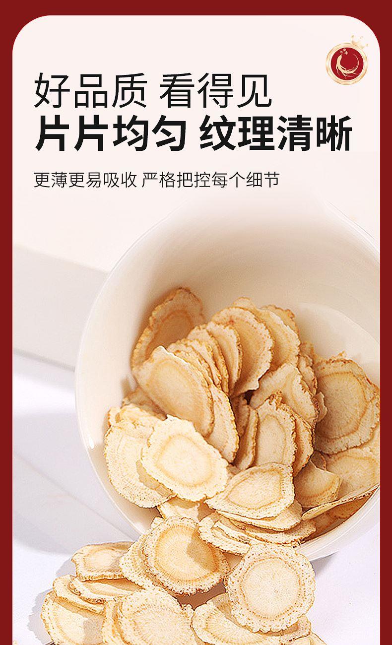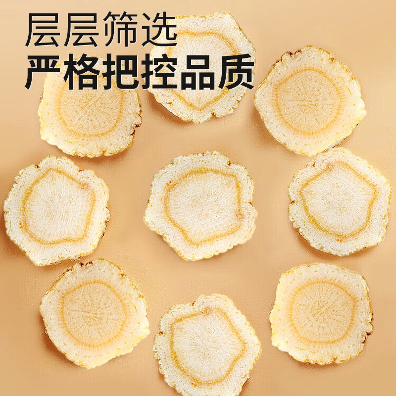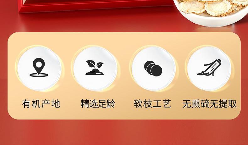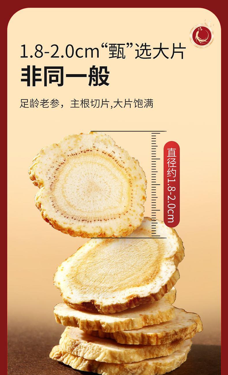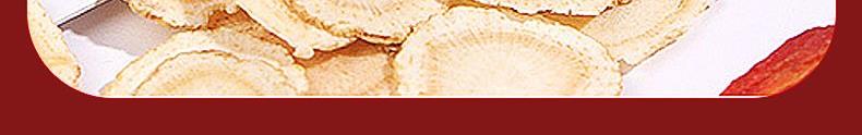 规格:100克(50克*2瓶) 片直径:1.8-2.0CM 包装盒尺寸:33*9.7*20CM 用法与用量:开水冲泡,每日食用量3-6克 贮藏方法:置阴凉干燥处,密封,防蛀 上市企业产品; 有机产地认证,健康放心; 软枝切片工艺,主根切片.