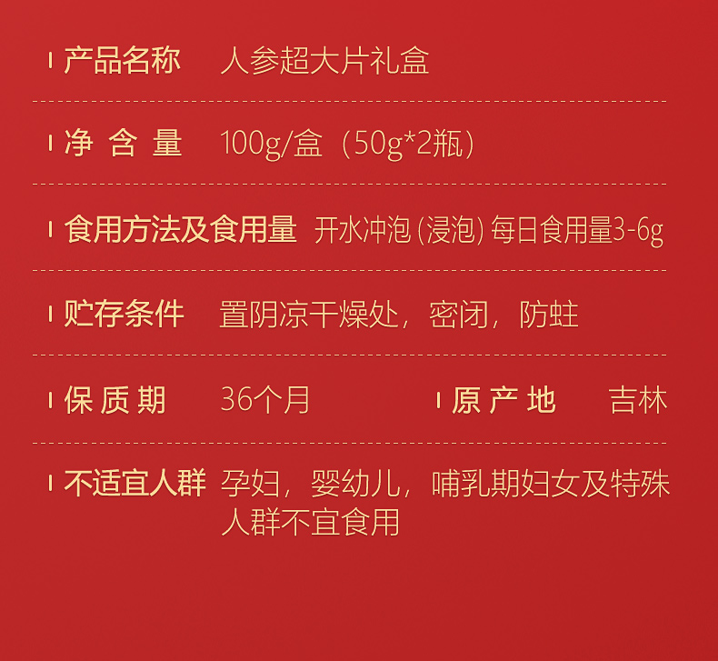 敖东人参超大片100克礼盒