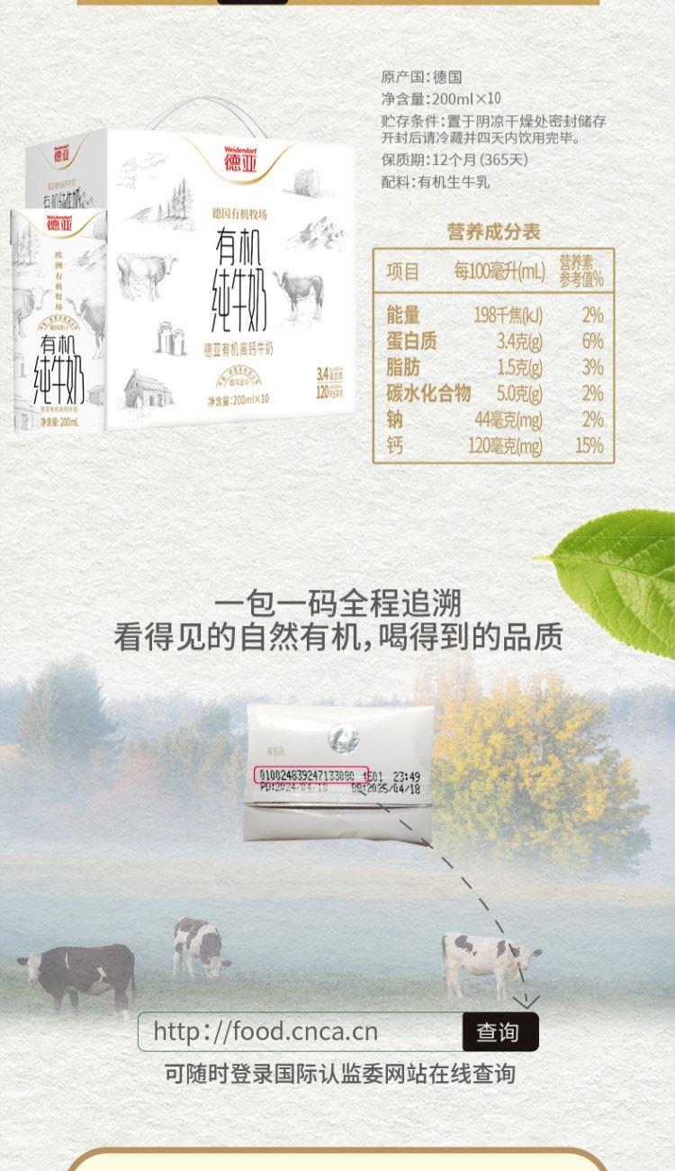 德亚有机高钙牛奶(200ml*10)礼盒