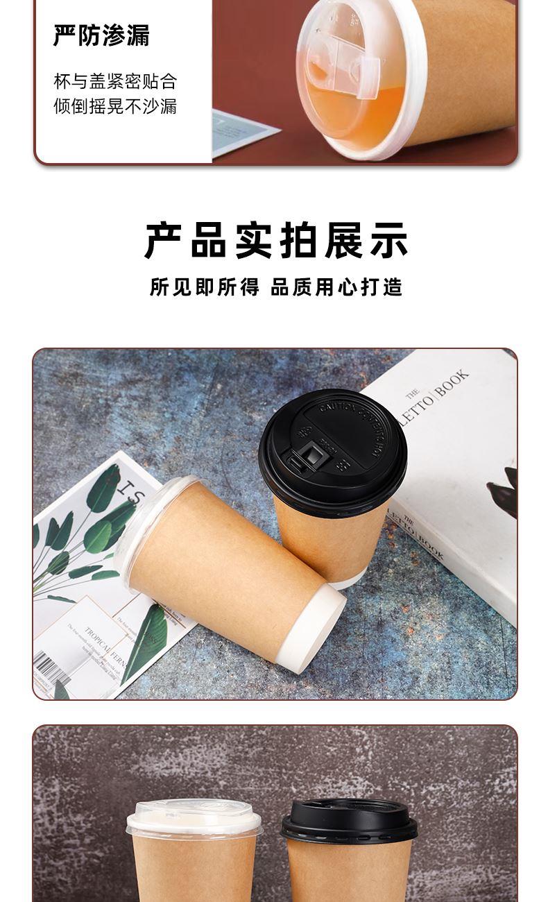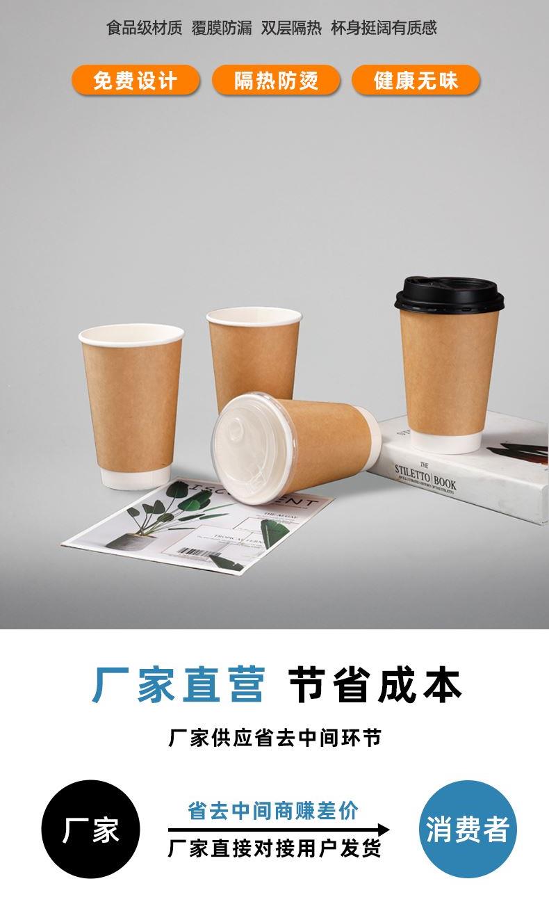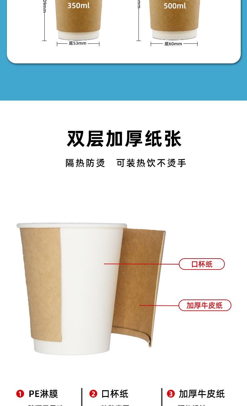 一次性纸杯带盖500ml双层加厚牛皮纸杯中空咖啡奶茶纸杯订制