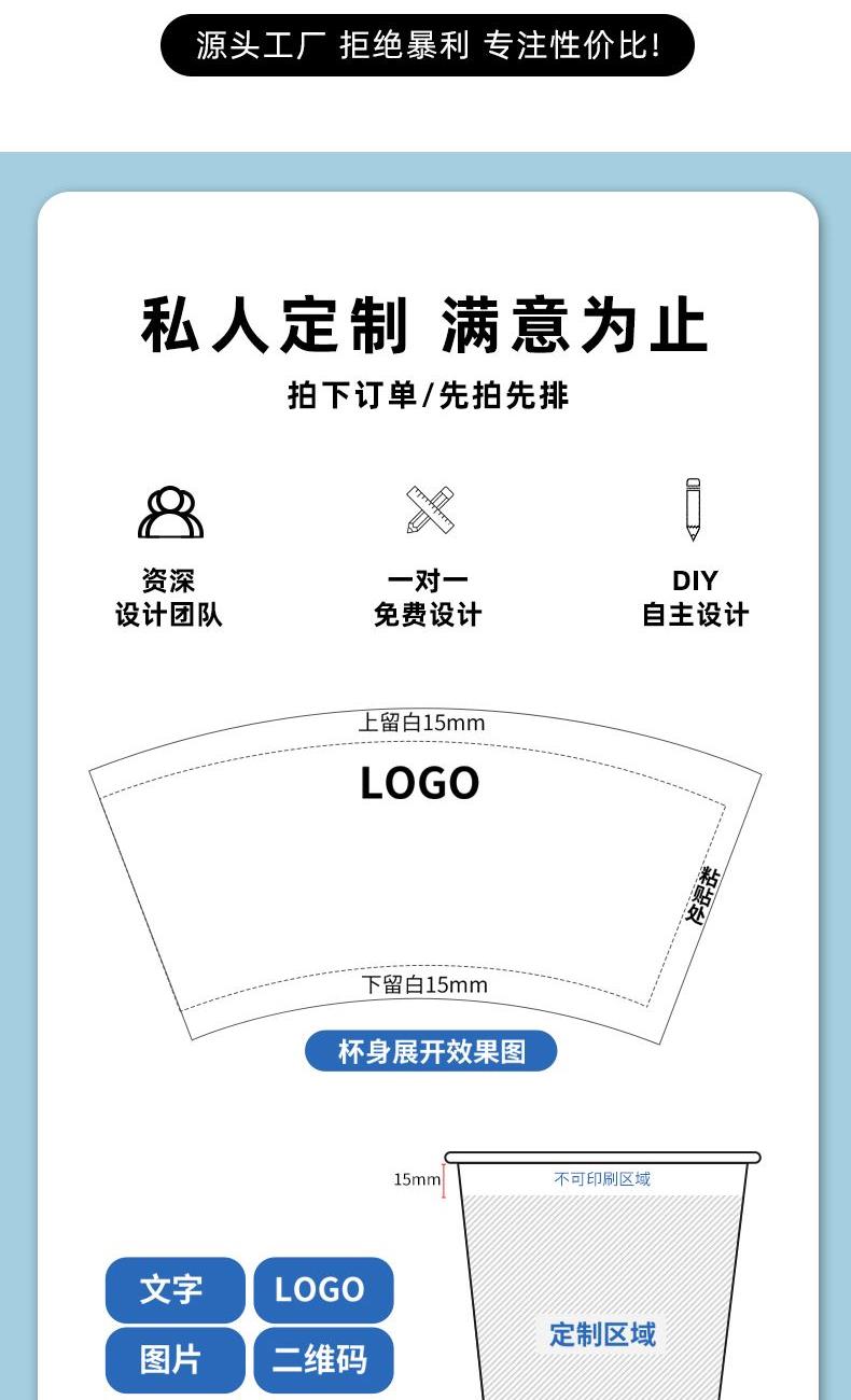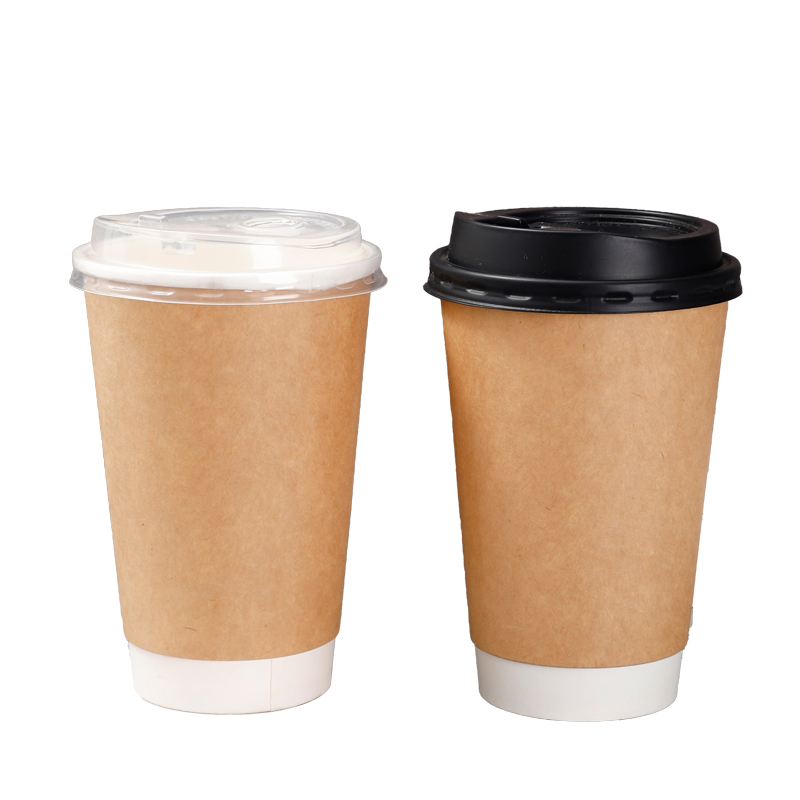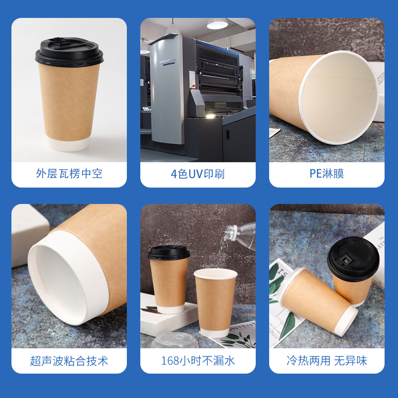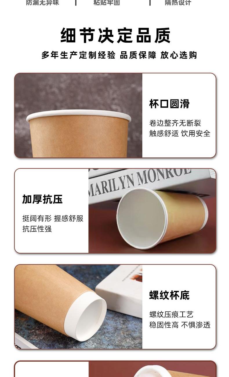 一次性纸杯带盖500ml双层加厚牛皮纸杯中空咖啡奶茶纸杯订制