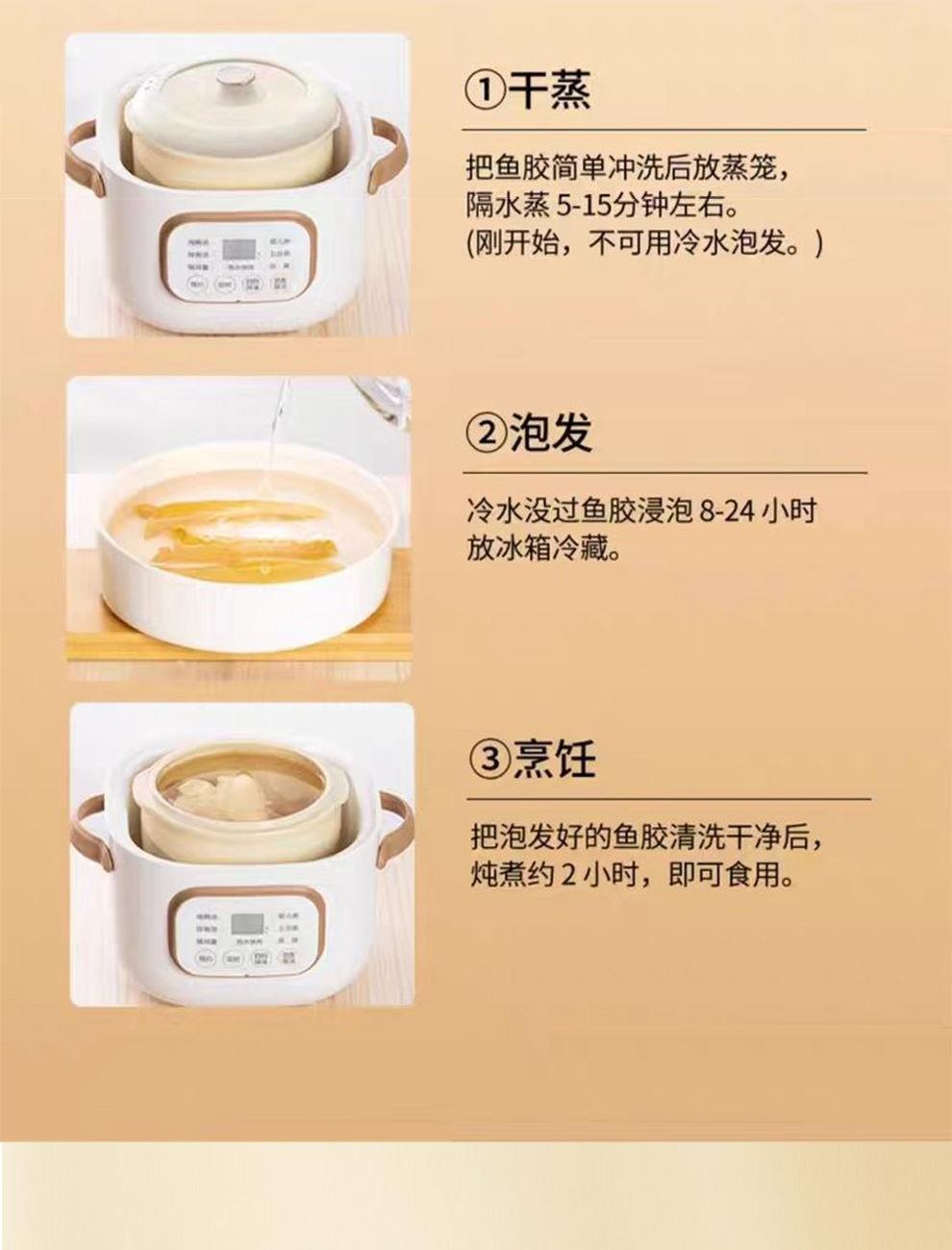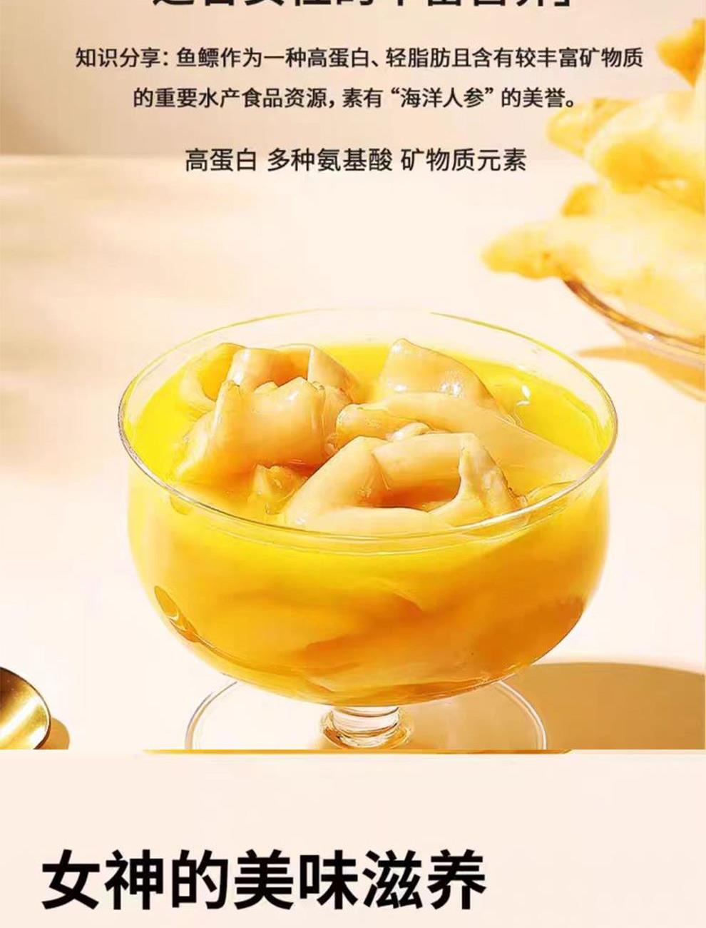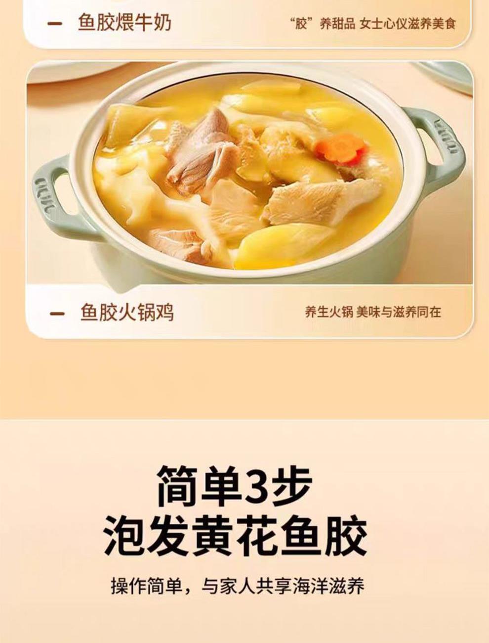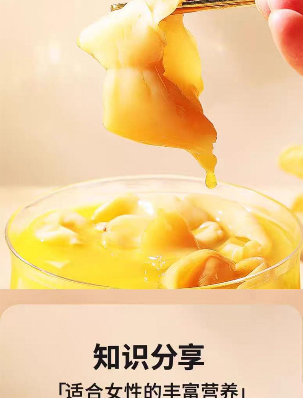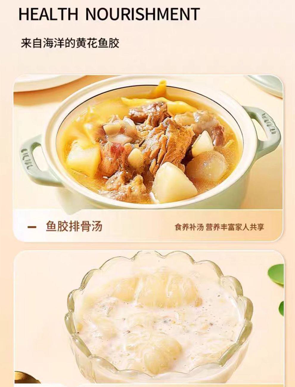 规格:100克 卖点: - 纯净深海环境:来自新几内亚附近深海,那里海域相对未受污染,水质洁净。深海的低温、高压环境使得生活在其中的鱼类生长缓慢,鱼胶的质地往往更加紧实、营养成分积累也更丰富。