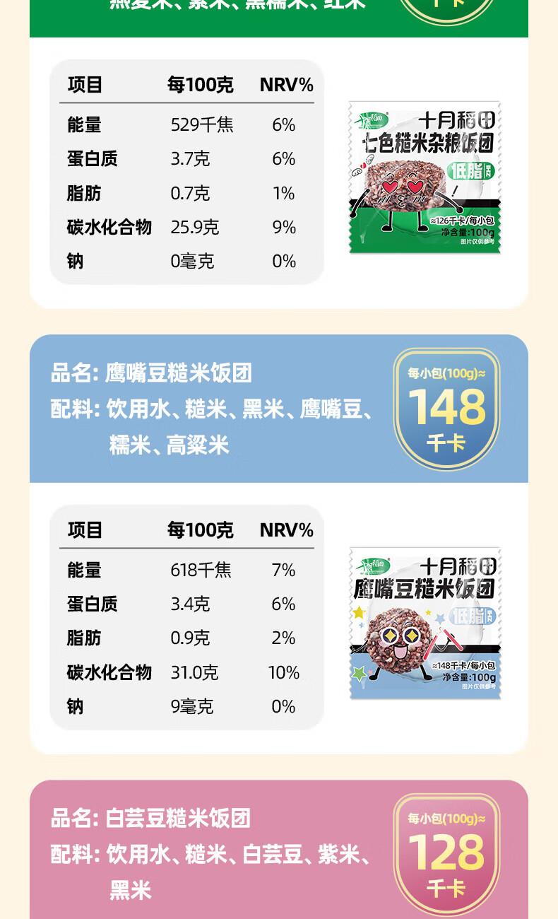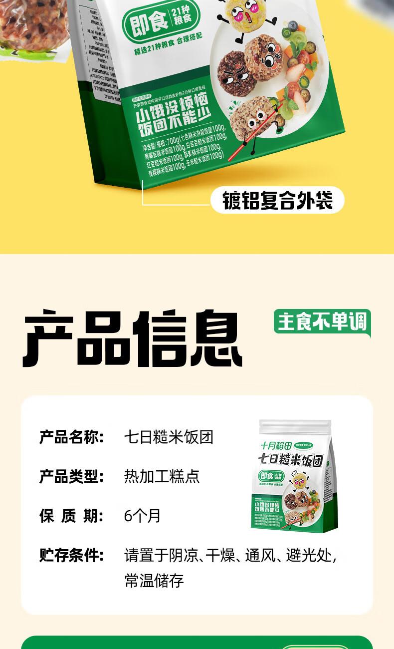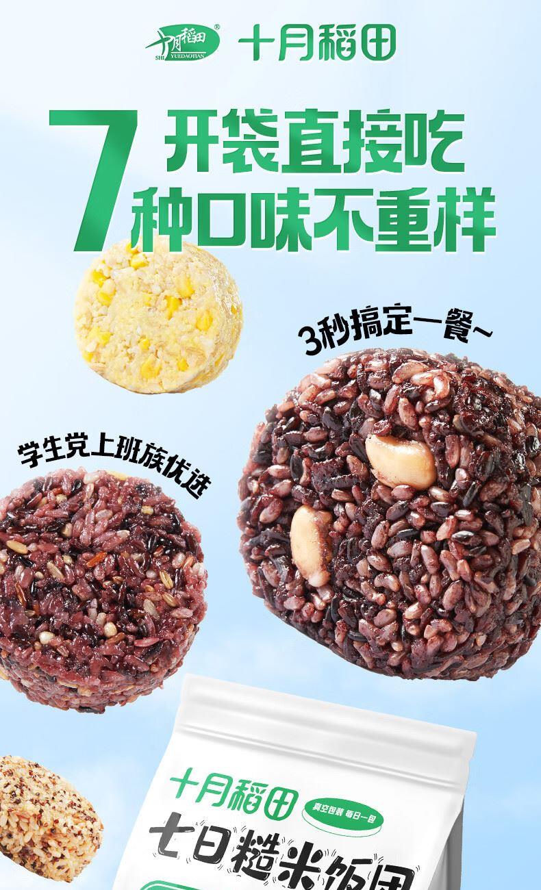 十月稻田7日即食糙米饭 规格:700g(100g7袋) 保质期:6个月 七日杂粮饭,7天不重样。低脂粗粮,可开袋即食。合理搭配,配料干净,拒绝多余添加。