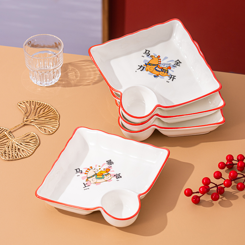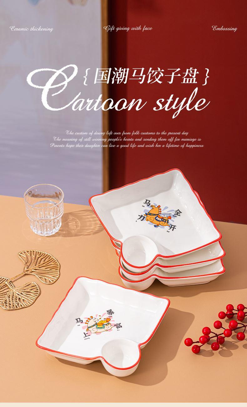 • 瑾明礼-马年马力全开-陶瓷饺子盘