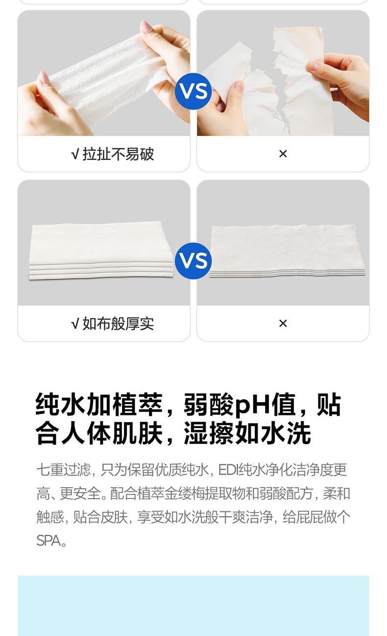 产品型号:524730-3 产品规格:200*150mm/片,80片/包 产品重量: 0.55kg左右 主要原料:可冲散水刺无纺布、EDI纯水、金缕梅提取物 产品保质期:2年