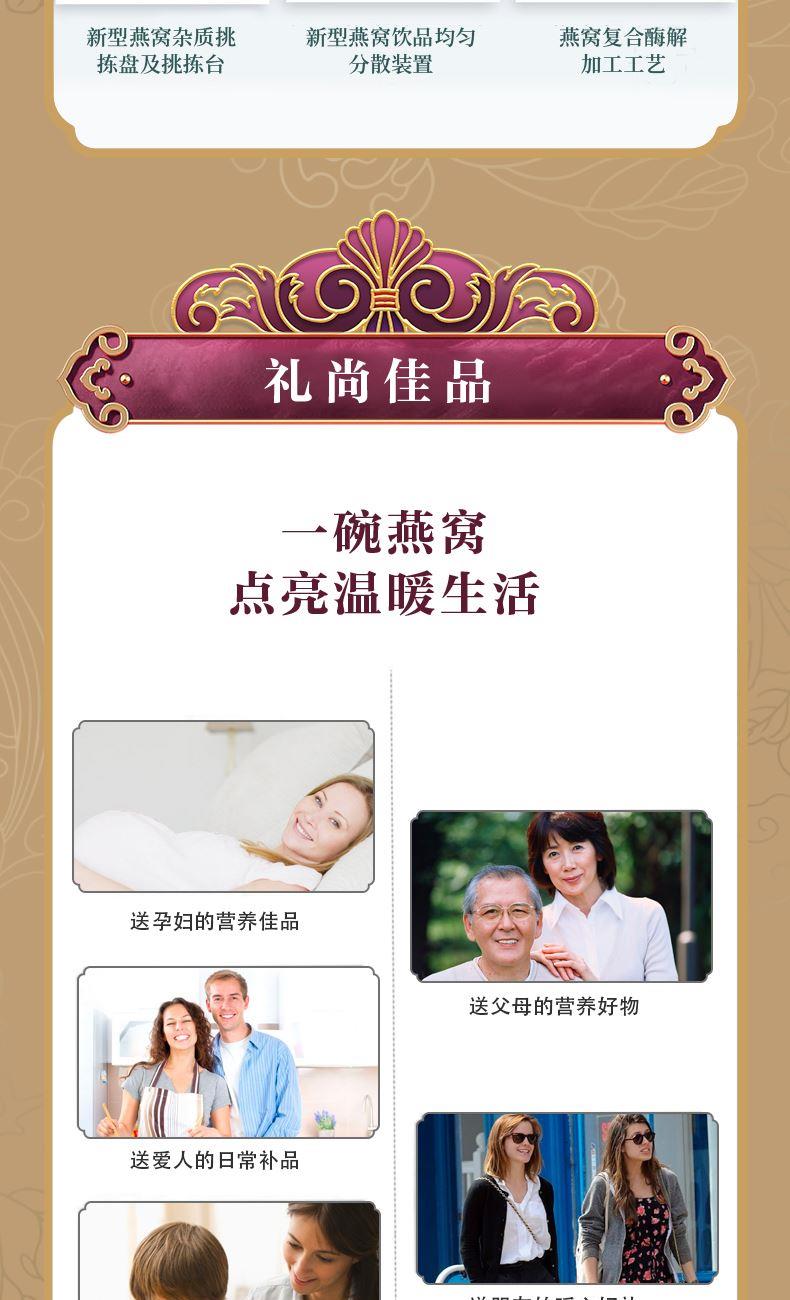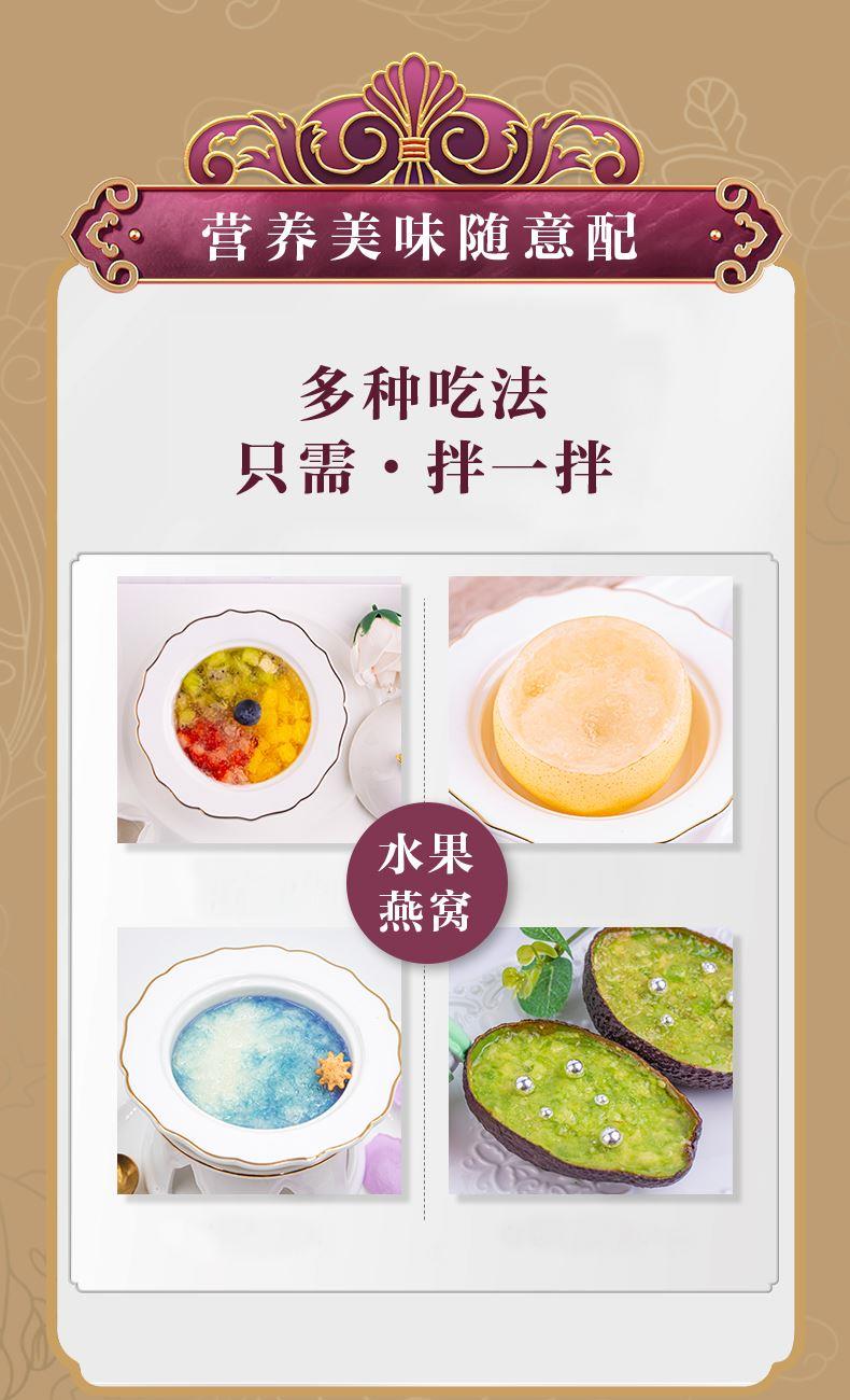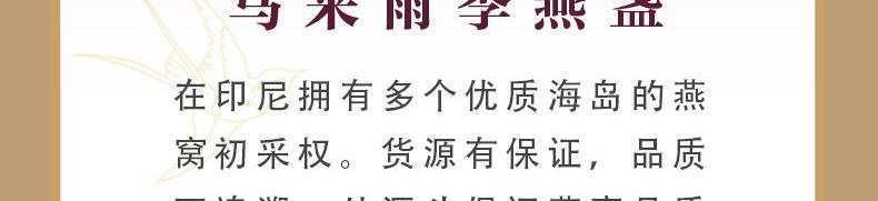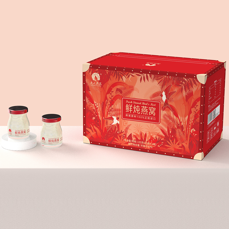 规格:45克*3瓶*1盒,固形物≥80% 卖点:原料均选自印尼、马来西亚等热带雨林核心产区,每瓶产品配备溯源码,消费者可查询原料产地、生产批次及质检报告,实现 “燕屋到舌尖” 的透明信任链。