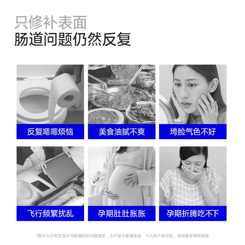 适用场景: 1、肠道脆弱、老是跑厕所、肠胃不好有口气 2、肚子胀气、肠道不通畅 3、身材管理,期望好身材 礼品渠道款