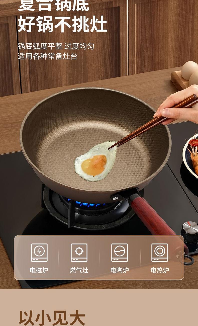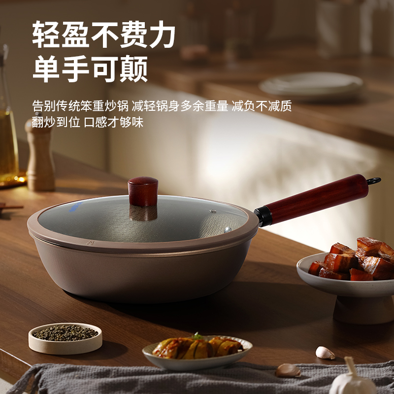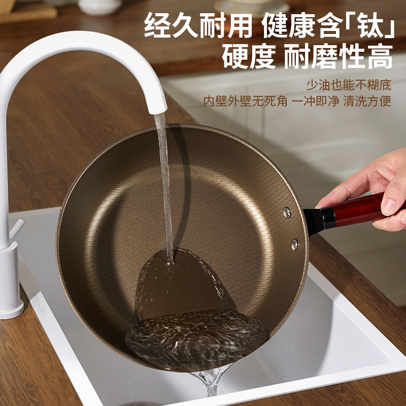 产品参数: 材质:食物接触用精铁 产品规格:炒锅28cm 彩盒尺寸:49*12.5*30 外箱尺寸:77*50*31.5 净重/毛重:2kg\2.4kg 产品卖点: 1.材质铁喷涂 2.不粘效果好,焖煮,煎炒 3.木手柄,木盖珠,手感好防烫耐用. 4.内含钛涂层,加热速度更快 5.食品级硅胶盖