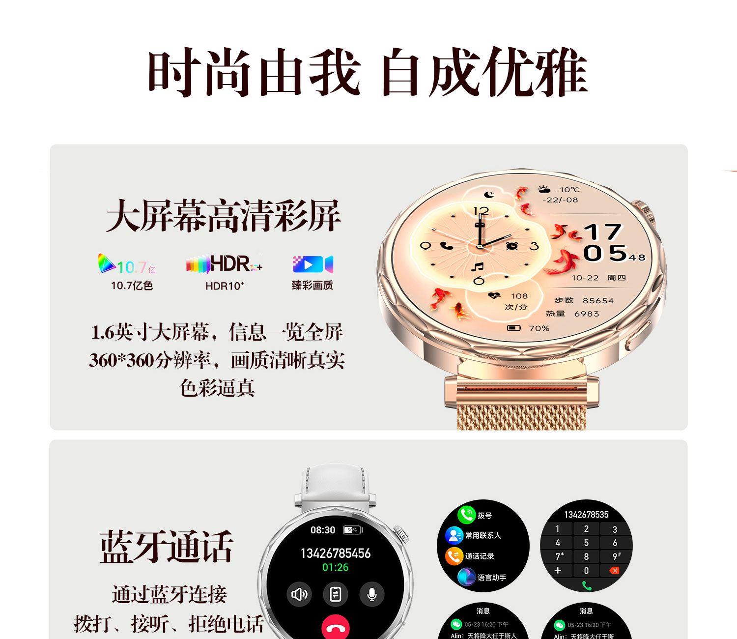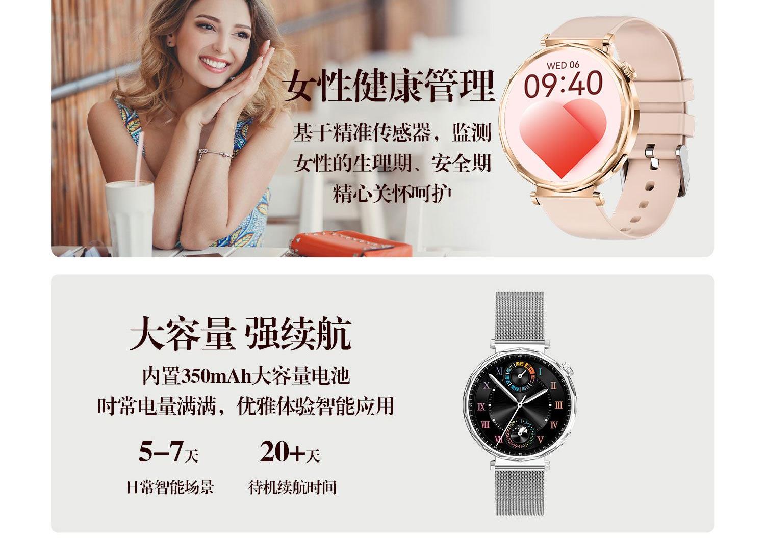 • LIGE利格女性健康检测运动通话智能手表BWEX200