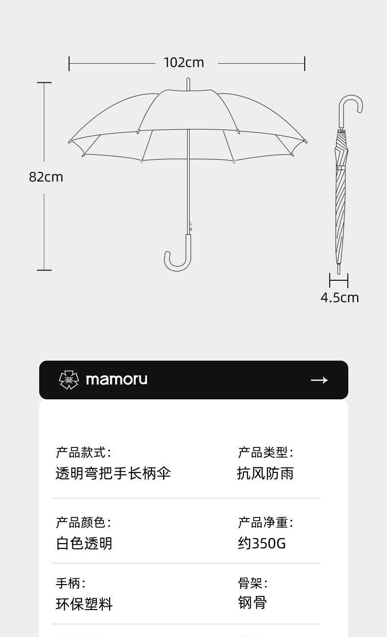 mamoru弯把手(长柄)透明伞