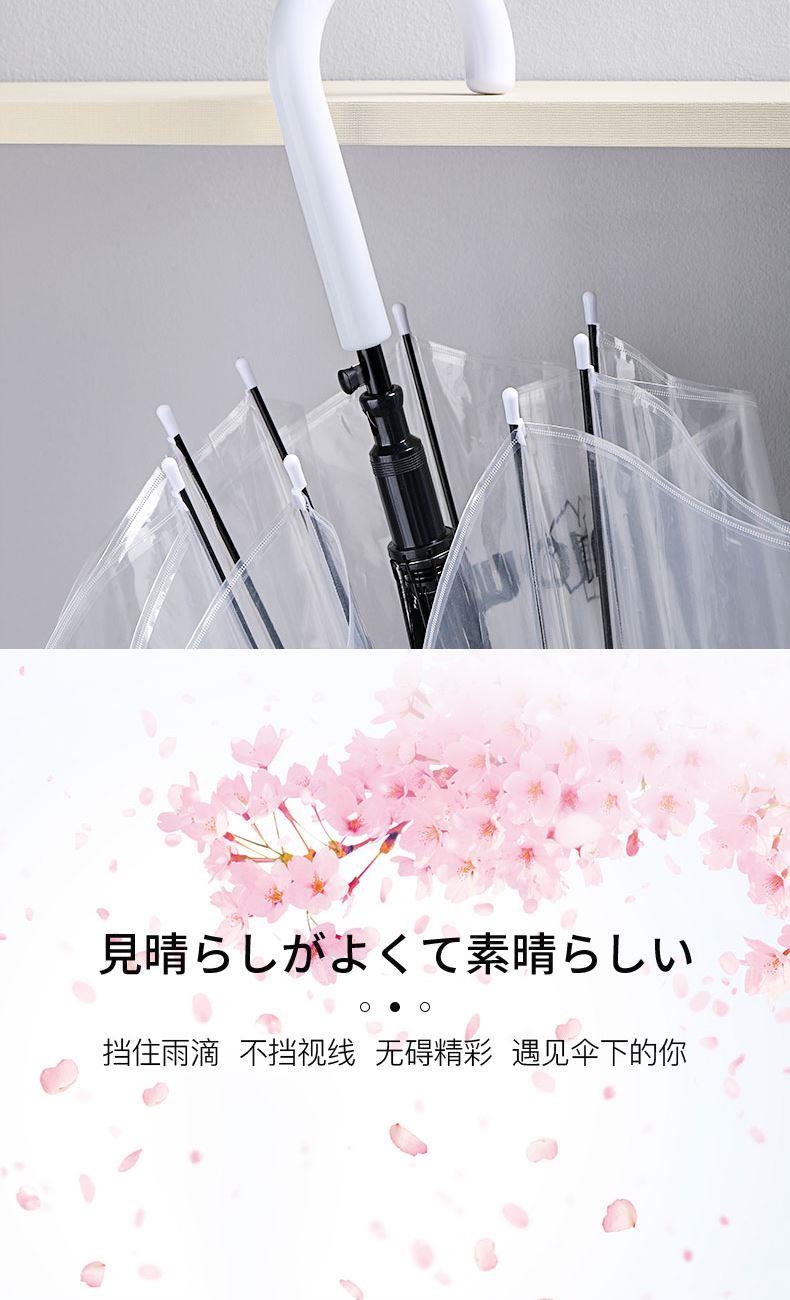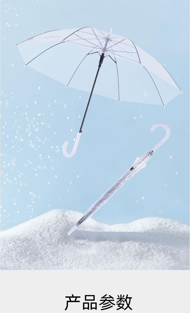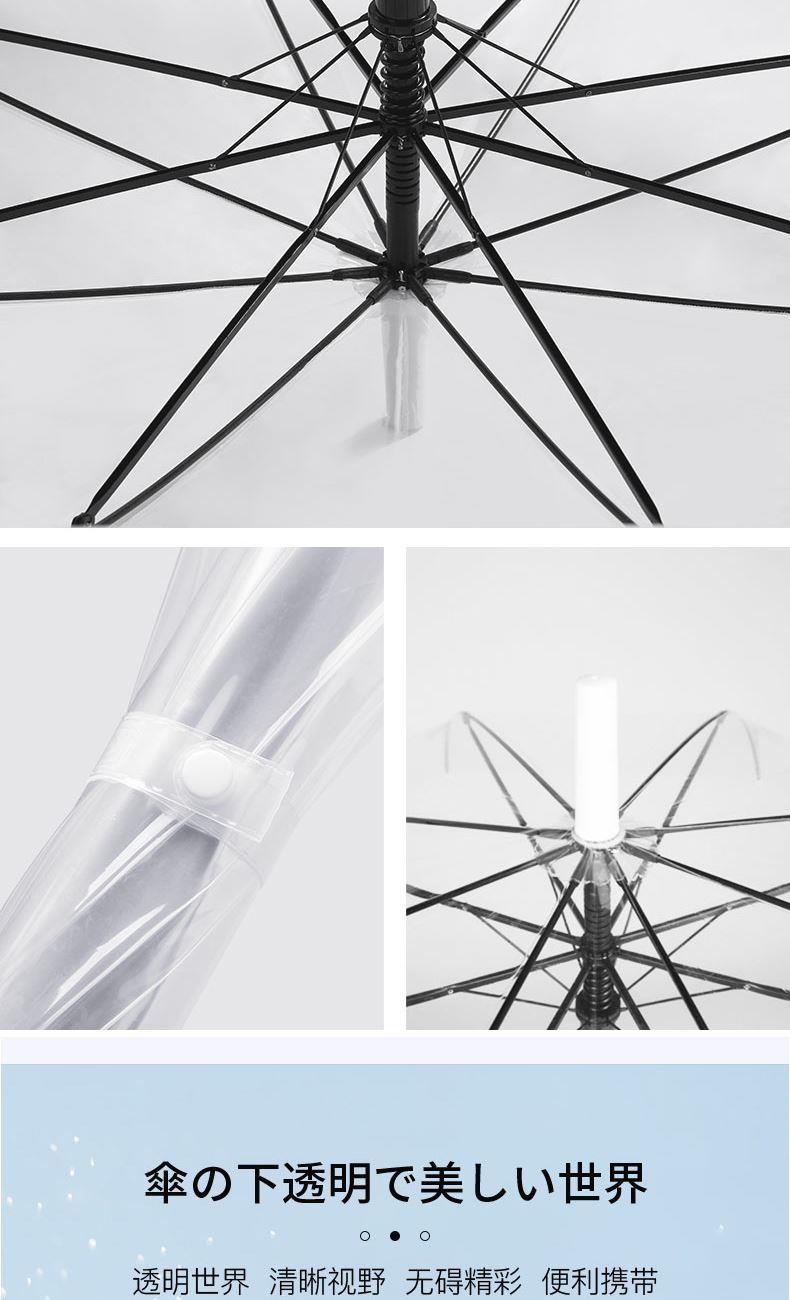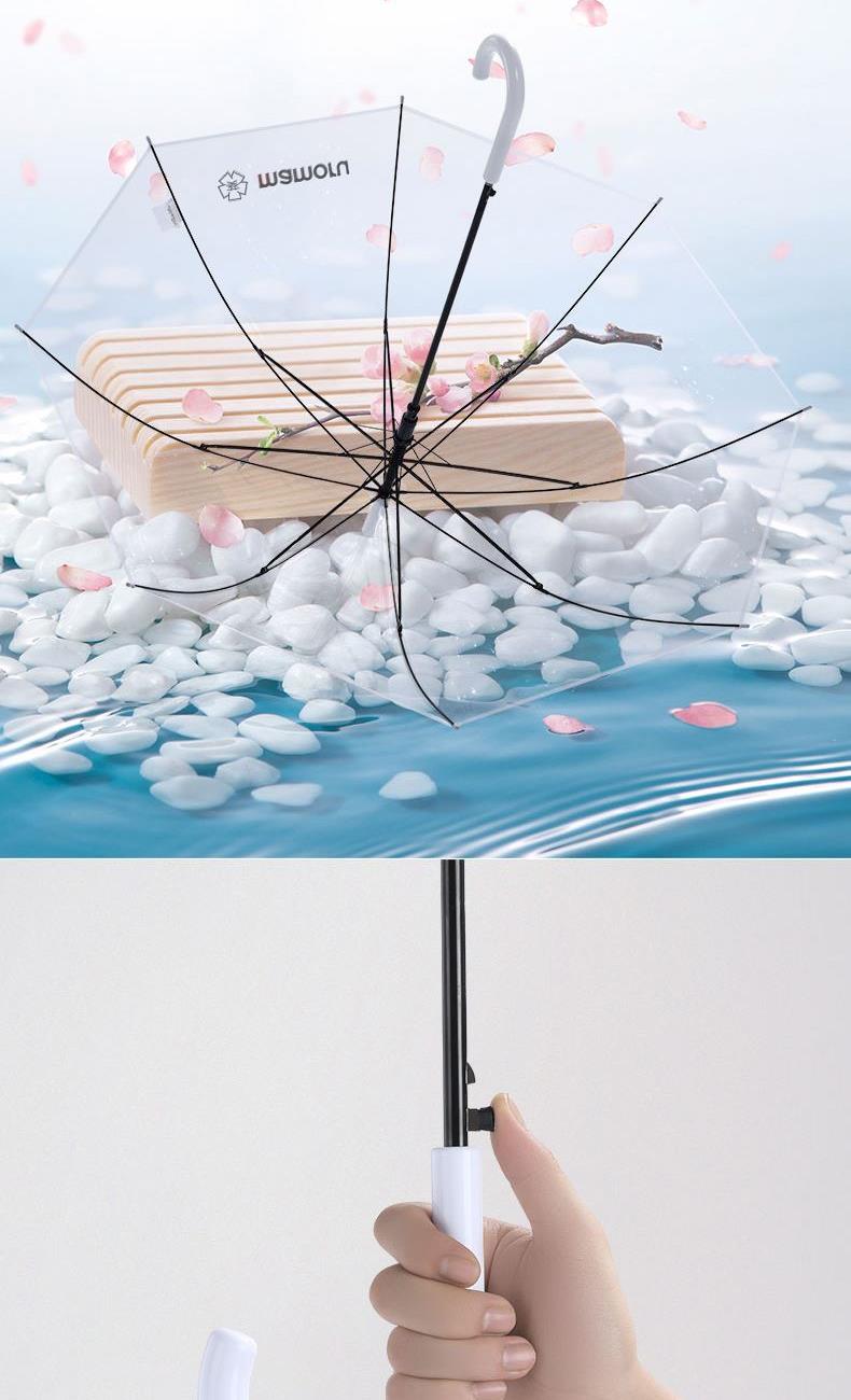 1、伞面加厚,普通PVC伞面0.07mm,我们的是0.09mm, 伞面印刷了细条纹,保持了透明伞的透度,日式小清新感觉。 2、软胶悬挂带,舒适方便,白瓷感钢漆烤漆 ,高颜值高品质体现。 3、透明伞的亮点就是雨天用他太美,拍照自拍道具神器。 4、可拆卸更换伞面设计,因为这个骨架设计可用10年,然后POE的伞面破损后,更换新的伞面即可,简单,方便可以自己更换。