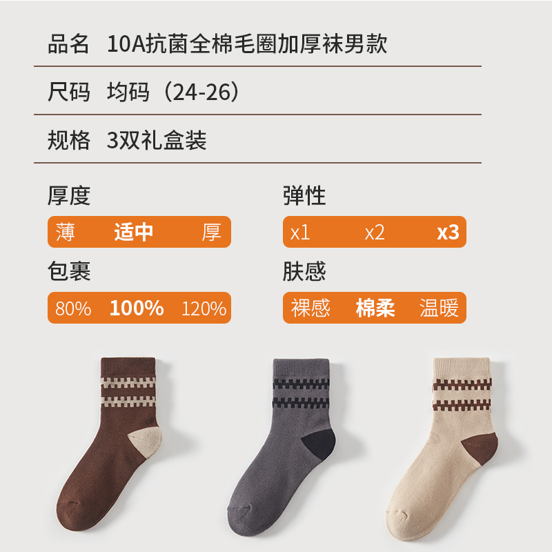 恒源祥10A全棉毛圈加厚袜男款3双装HYX060WZ