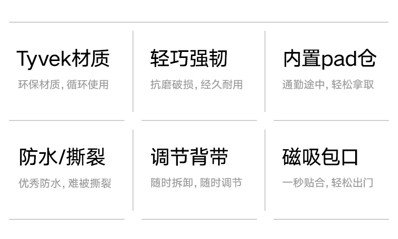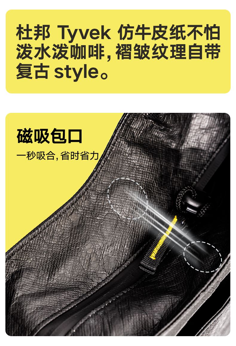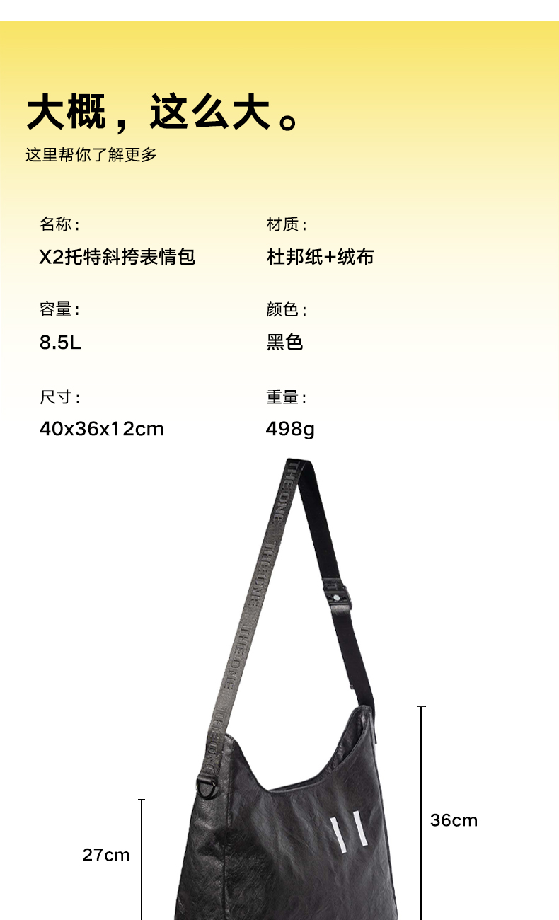 材质:杜邦纸+绒布 容量:8.5L 颜色:黑色 尺寸:40x36x12cm 重量:498g