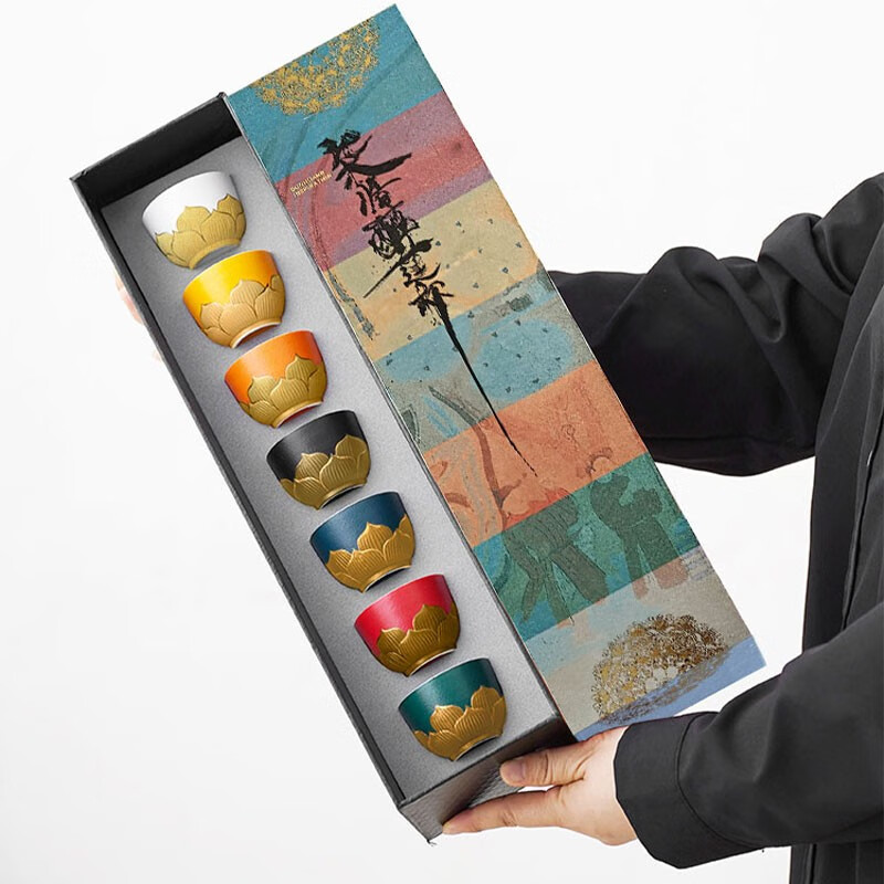 敦煌文创七情醉莲杯茶具套装礼盒茶杯送长辈礼品送长辈