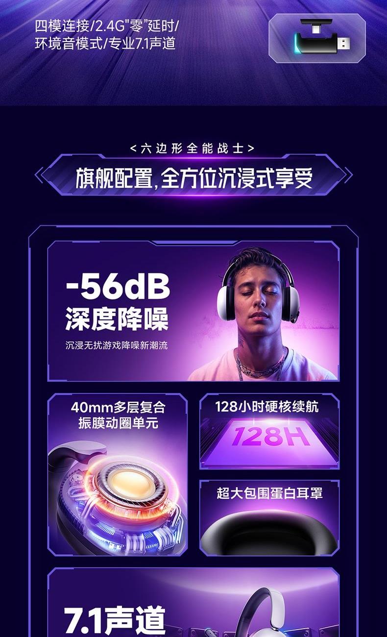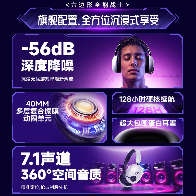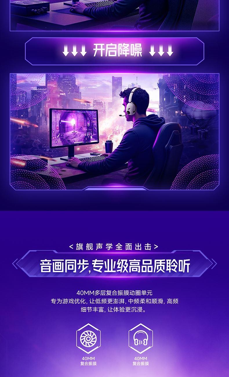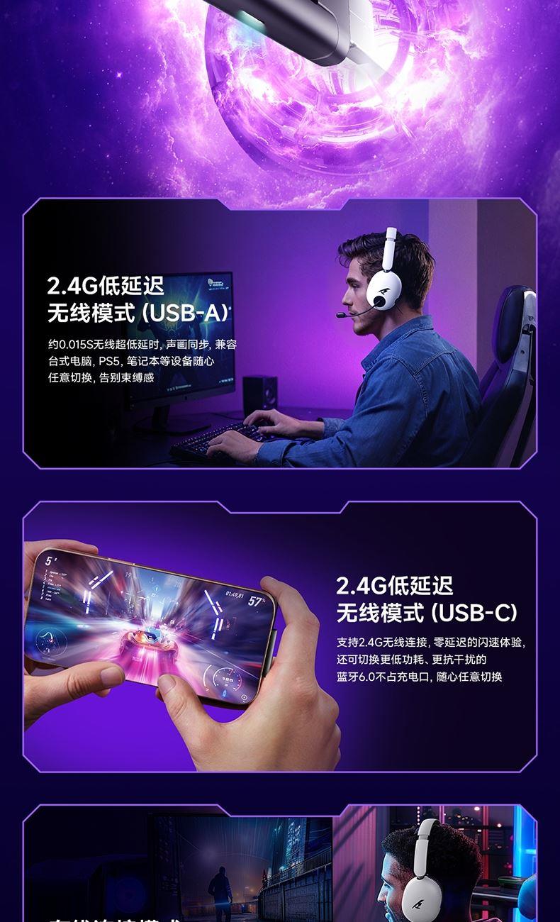 颜色:白黑色、黑红色、太空灰 连接方式:蓝牙,插线 蓝牙方案:JL7018M+JL7016 蓝牙版本:V5.4 接受距离:10m 频响范围:20HZ-20kHZ 电池容量:1500mA 使用时间(70%音量):≈100h 喇叭尺寸:50mm 喇叭灵敏度:105+3dB 充电接口:TYPE-C 1、支持【picun品存】APP智能互联控制 2、专业游戏级:25-40毫秒内无感延迟 3、RGB游戏氛围装饰灯 4、zui长达100小时续航 5、强大的动态EQ沉浸音效 6、50MM大喇叭单元 7、手机/PS4/PS5/switch/PC全兼容