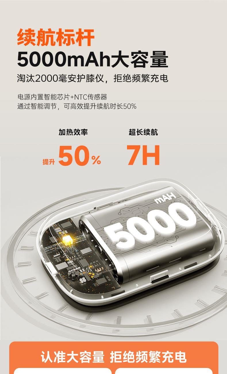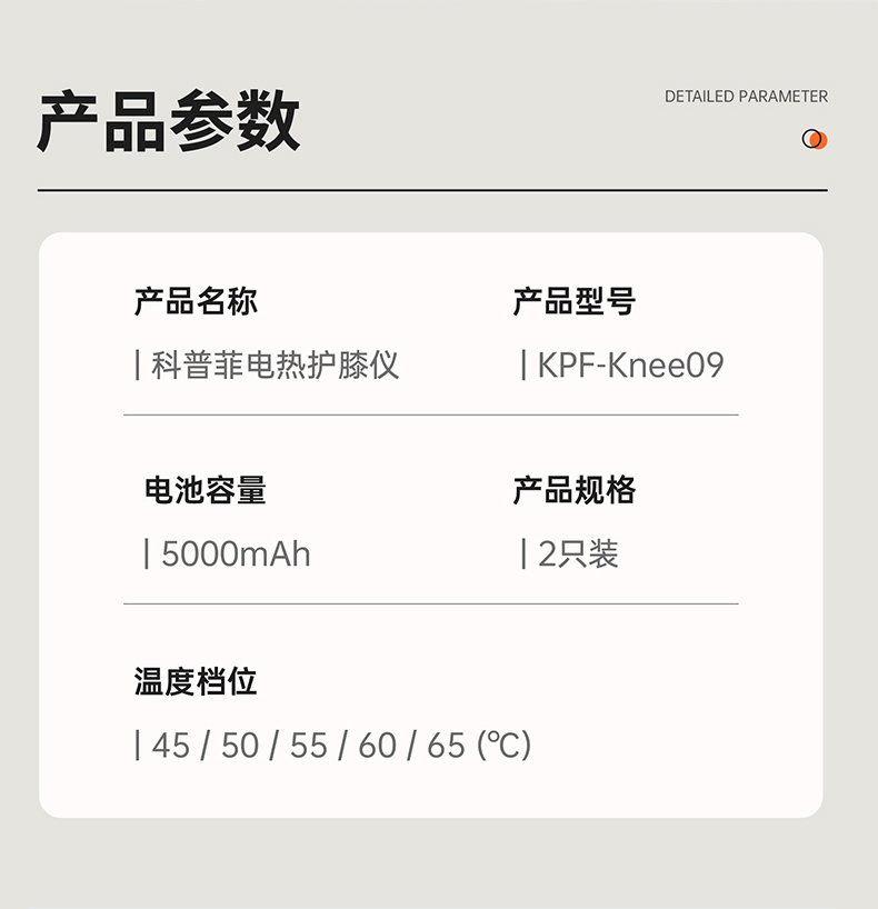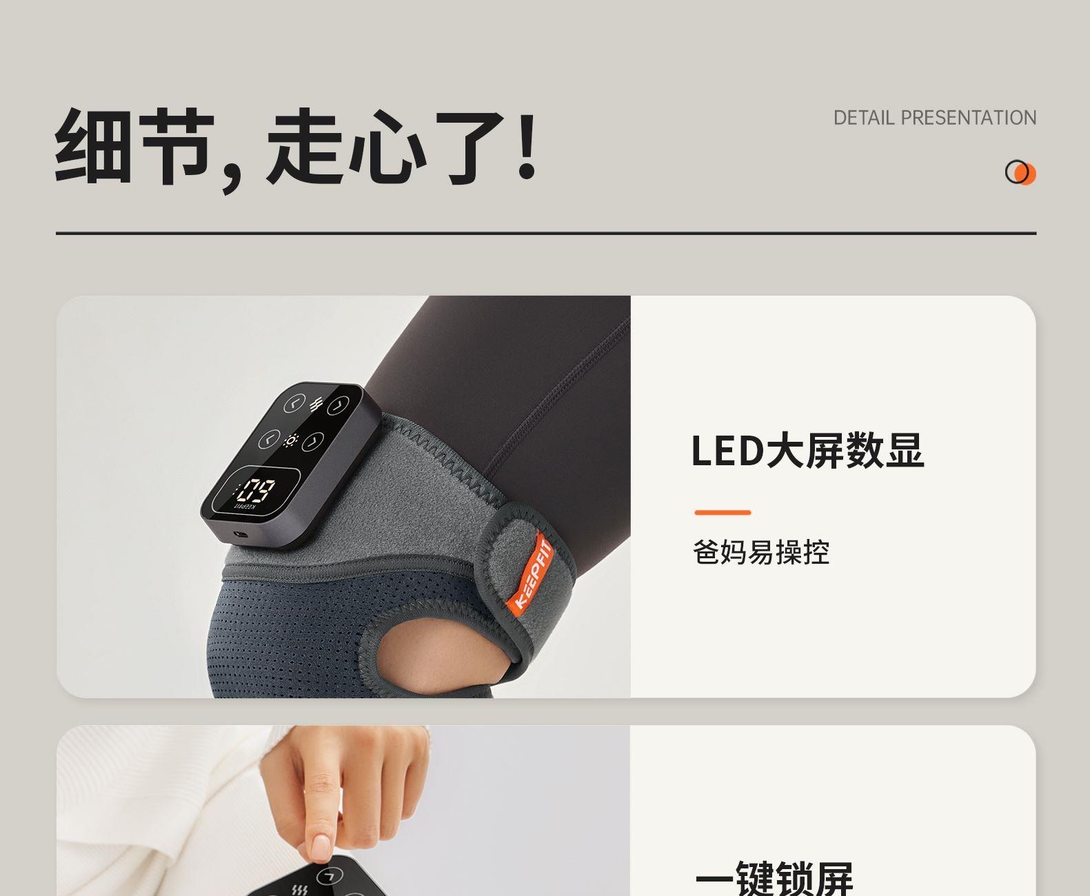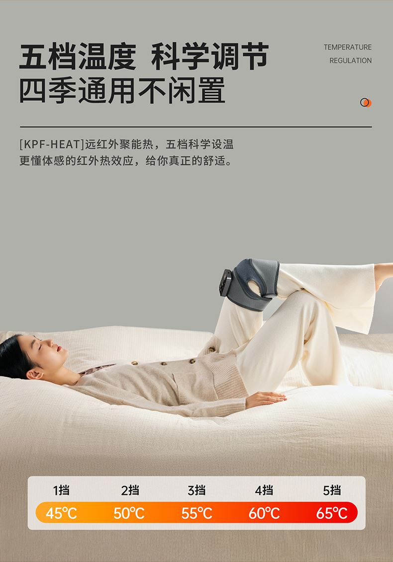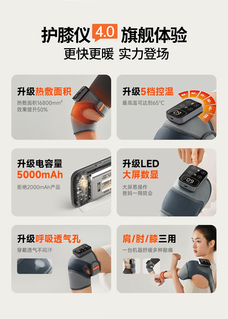 1.肩部,膝盖,手肘(多功能按摩器)有配1根延长带 2.触屏设计,3种按摩模式 3.对扣设计,粗细腿型都能用 4.电池容量5000毫安,每天用一次可用7天 5.5档温度调节: 一档45℃/二挡50℃/三档55℃/四档60℃/五档65℃ 6.配合艾草养护,实现无明火艾熏, 促进血液循环,老寒腿等膝盖问题有非常好的效果。