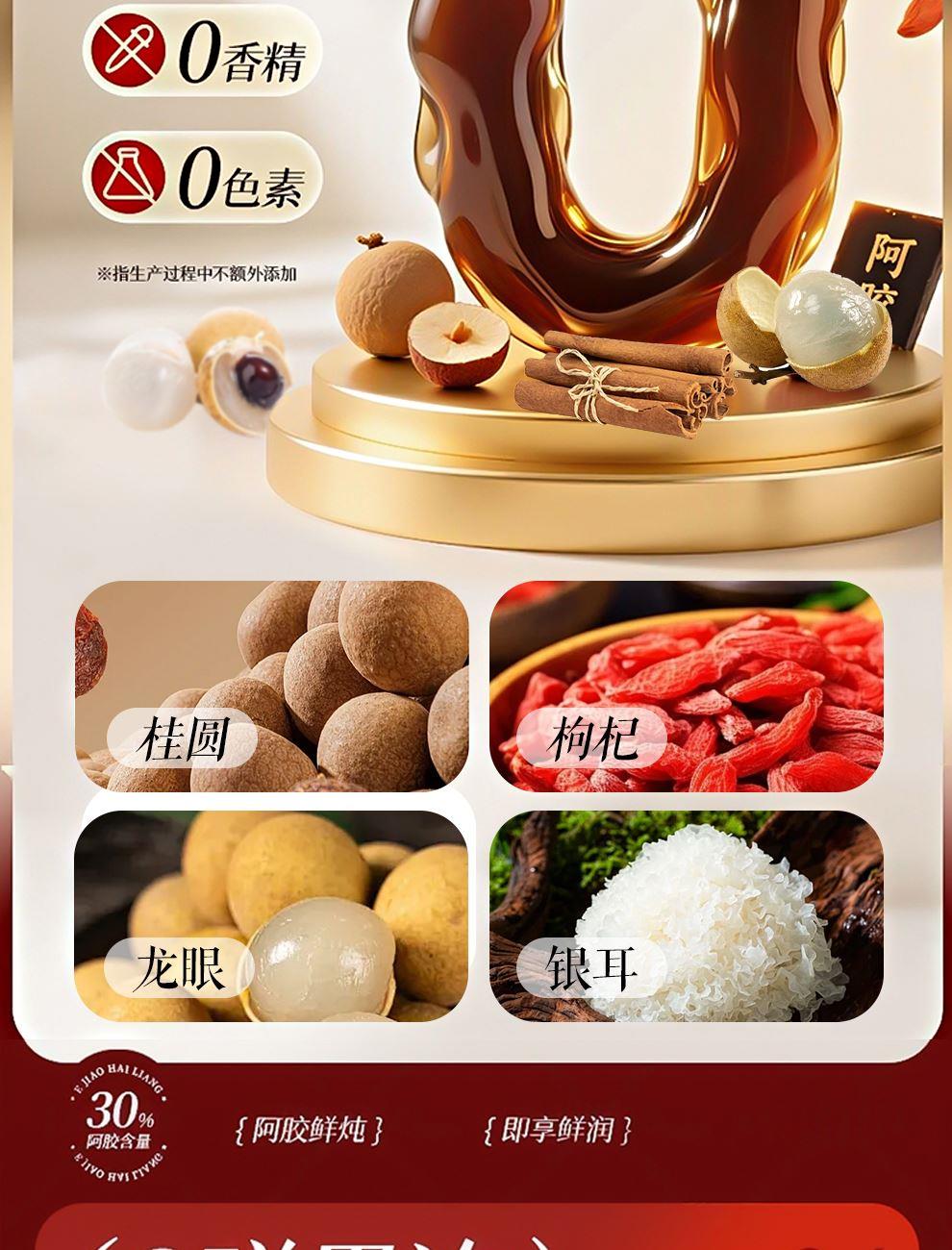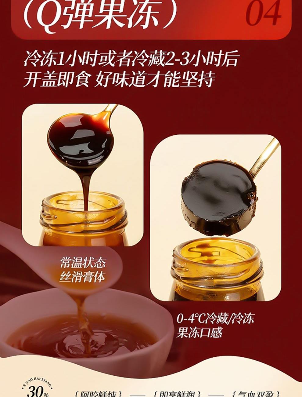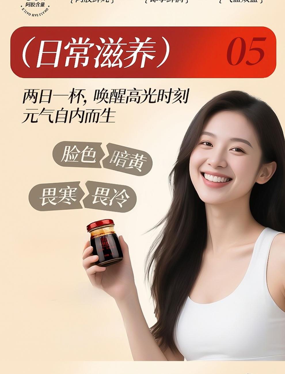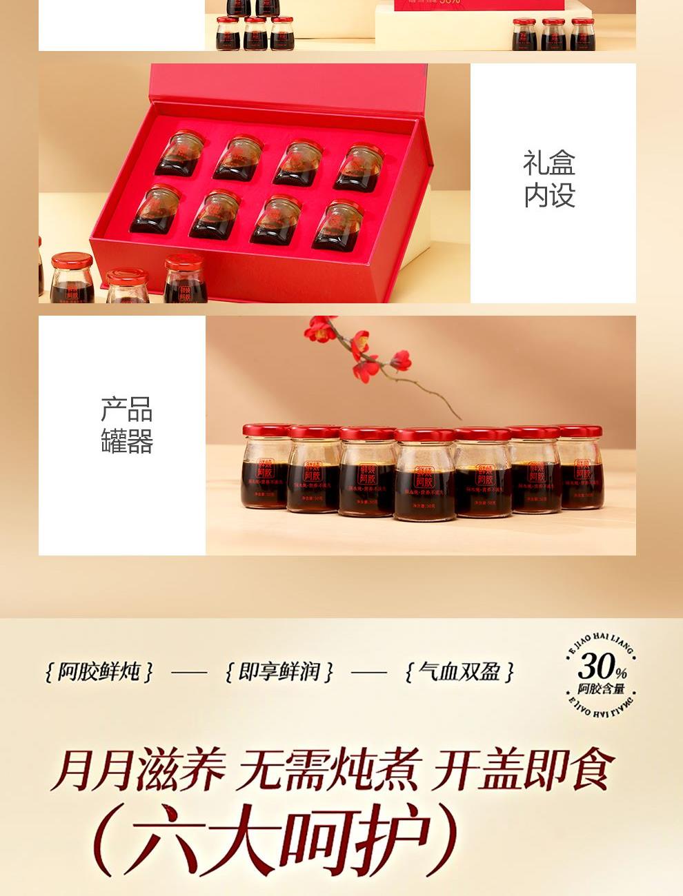 规格:400克(50克*8瓶)、阿胶添加量≥30% 卖点: 我们坚持采用古法熬制工艺,历经泡皮、刮毛、焯皮、化皮、靠汁、打沫、过滤、浓缩、凝胶、切胶等多道繁琐工序,每一步都严格遵循传统标准,由经验丰富的老匠人精心把控。在熬制过程中,掌握火候与时间,使阿胶的胶质充分释放,与其他食材相融合,保留了阿胶及各种食材的营养成分与天然风味。这种传统工艺制作出的阿胶糕,质地均匀、软硬适中、胶香浓郁,是现代工业化生产无法复制的匠心之作。