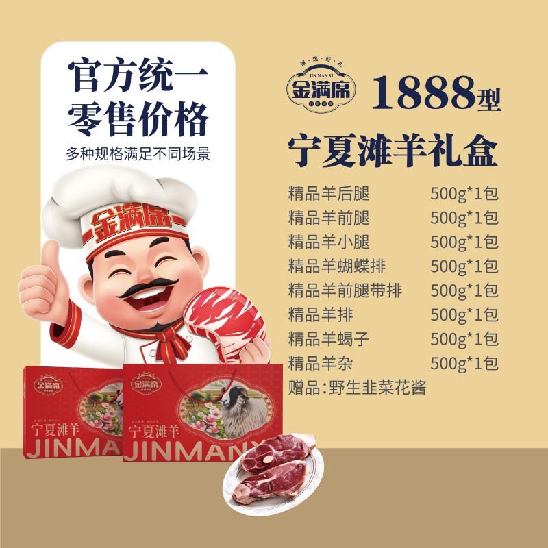 1.精品羊后腿500g 2.精品羊前腿500g 3.精品羊小腿500g 4.精品羊蝴蝶排500g 5.精品羊前腿带排500g 6.精品羊排500g 7.精品羊蝎子500g 8.精品羊杂500g 赠品:野生韭菜花酱