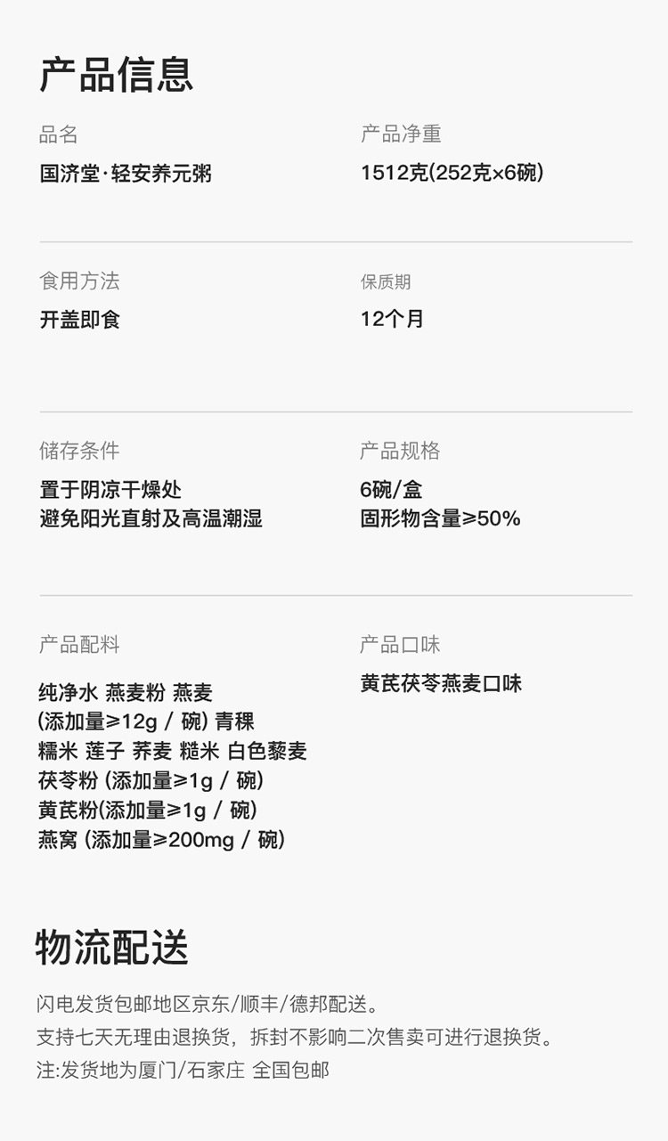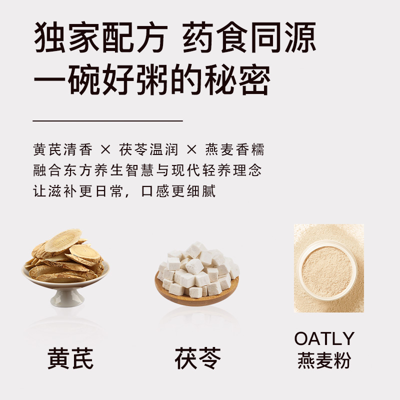 食材口感温润细腻,软糯香甜,黄芪、茯苓与燕麦粉的结合,浓而不腻,好吃健康无负担。 早晚代餐,营养一碗搞定。双低守护(低升糖),双高滋养(高蛋白、高膳食纤维),科学配比,成为健康稳糖新选择。 一盒6碗,无糖 老少皆宜,配料干净,坚持纯粹品质。
