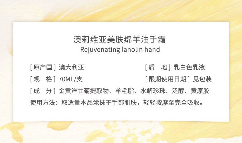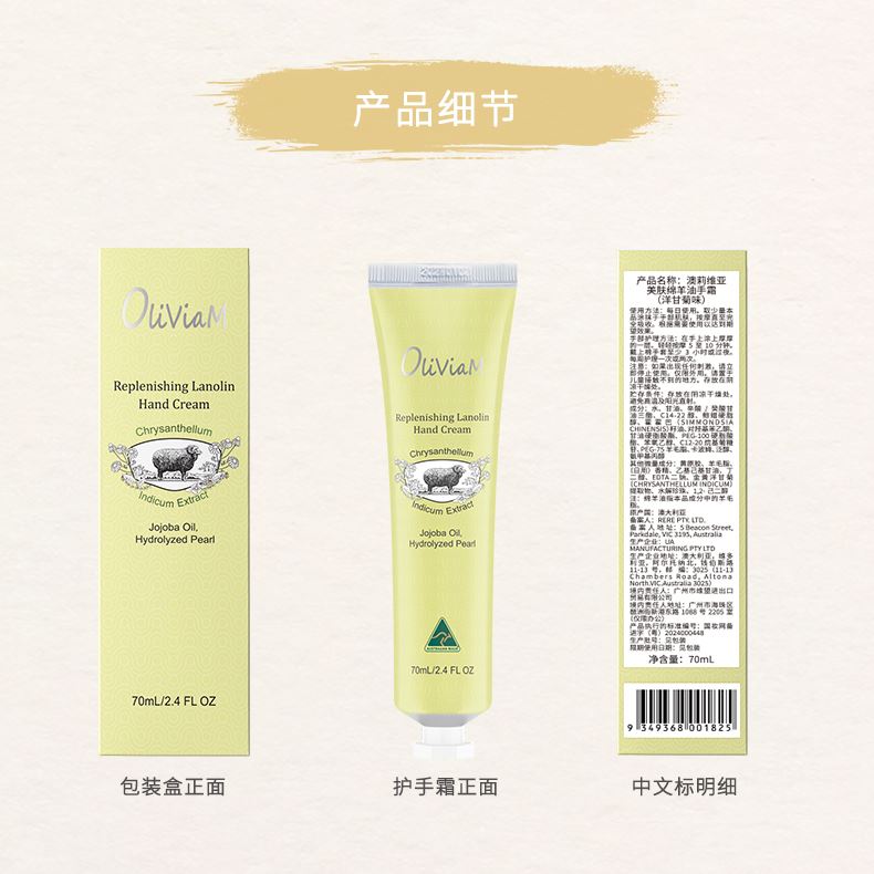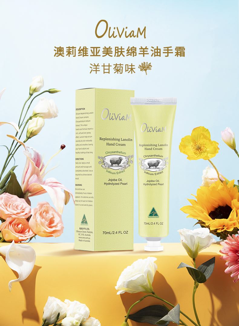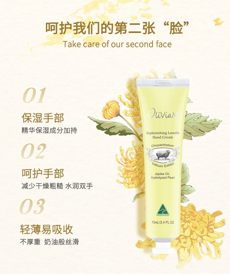 澳大利亚原装进口:OLIVIAM澳莉维亚美肤绵羊油手霜(洋甘菊味) 富含活力能量的洋甘菊精华,清新淡雅的香味,保湿不粘腻 澳莉维亚个护美妆系列(澳大利亚原装进口),京东自营5W+销量,京东旗舰店,天猫旗舰店 !2025抖音小红书畅销产品.,支持一件代发!2、原装进口,品质好,