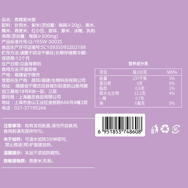 姚朵朵燕窝紫米粥260克*6碗