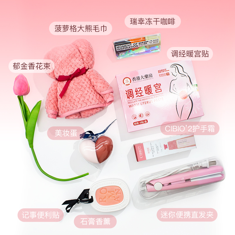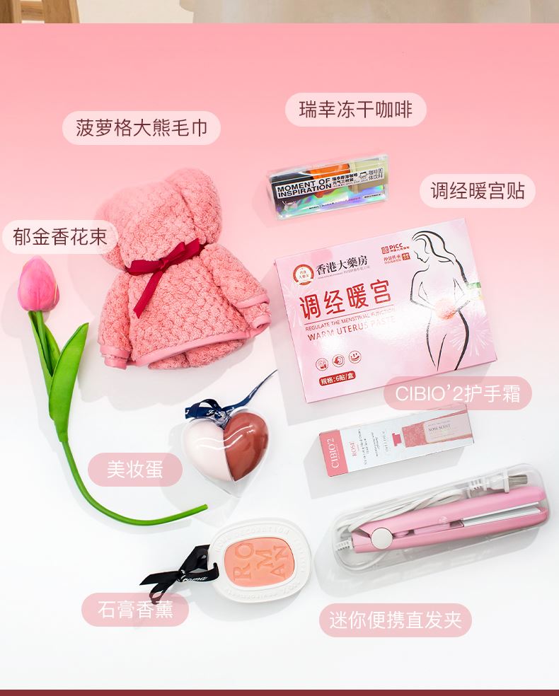 瑞幸元气冻干咖啡2g*3颗 菠萝格毛巾35*75cm 迷你便携直发小夹板 石膏香薰 CIBIO2护手霜35ml 调经暖宫贴6贴 爱心美妆蛋 郁金香花束