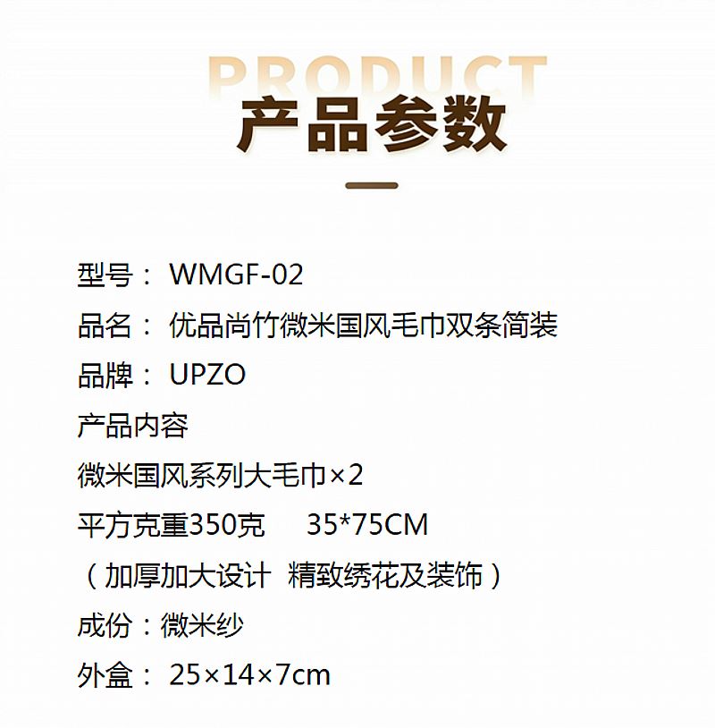 型号: WMGF-02 产品内容 微米国风系列大毛巾×2 平方克重350克 35*75CM (加厚加大设计 精致绣花及装饰) 成份:微米纱 外盒: 25×14×7cm 国风刺绣 搭配主题礼盒 优质伴手礼 文创礼品