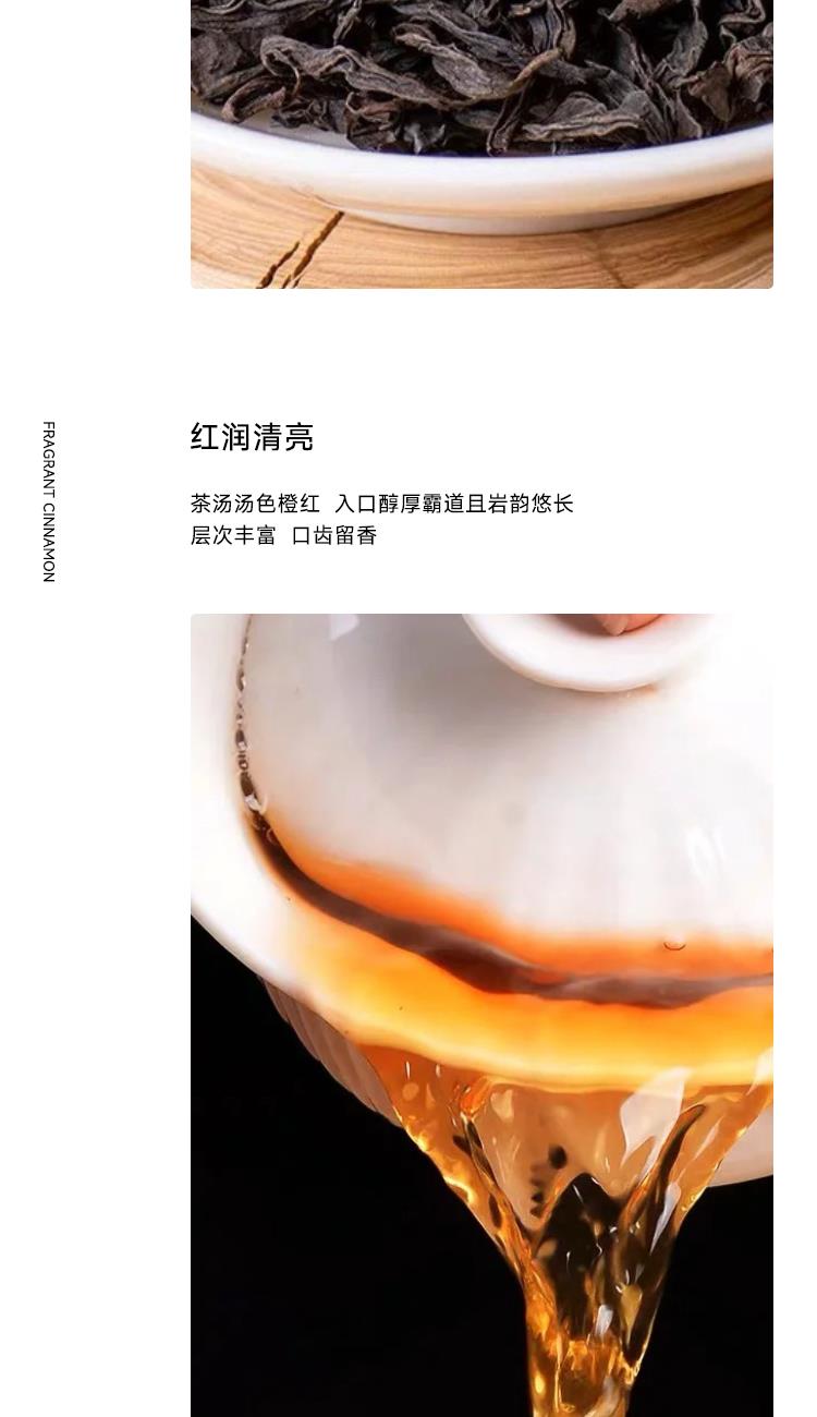 1. 核心产区正岩韵,果香馥郁独一份:源自武夷岩茶核心产区,甄选优质肉桂茶青,经传统炭焙工艺精制而成。打破传统肉桂的辛辣感,突出鲜爽果香与岩骨花香的融合,入口醇厚甘滑,回甘持久,每一口都是正岩茶的稀缺风味。