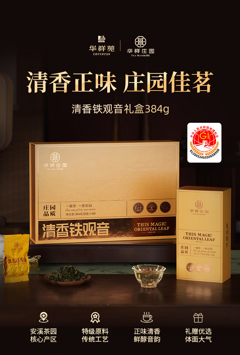 华祥苑安溪自有茶庄园,制茶大师监制,传成百年制茶技艺,淬炼传统正味,备受茶友喜爱精选384克经典大礼盒,走亲访友,心意之选。