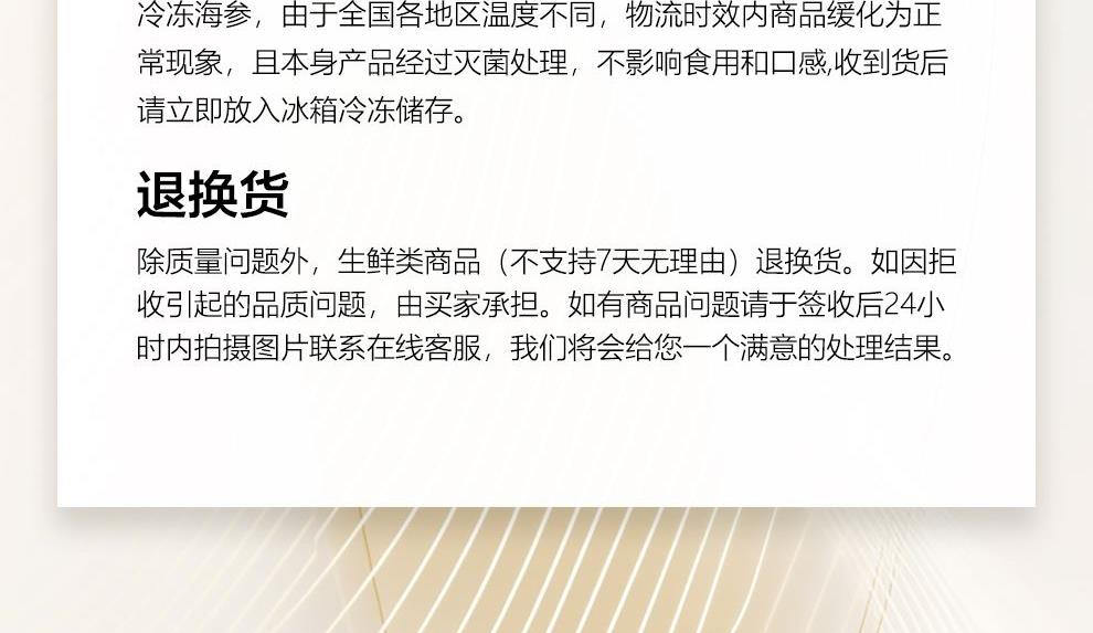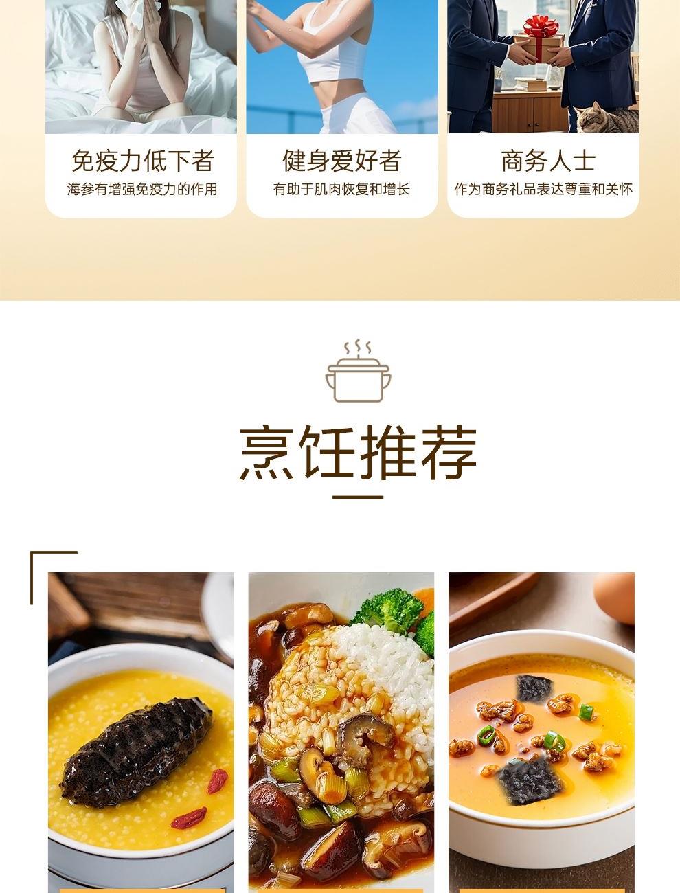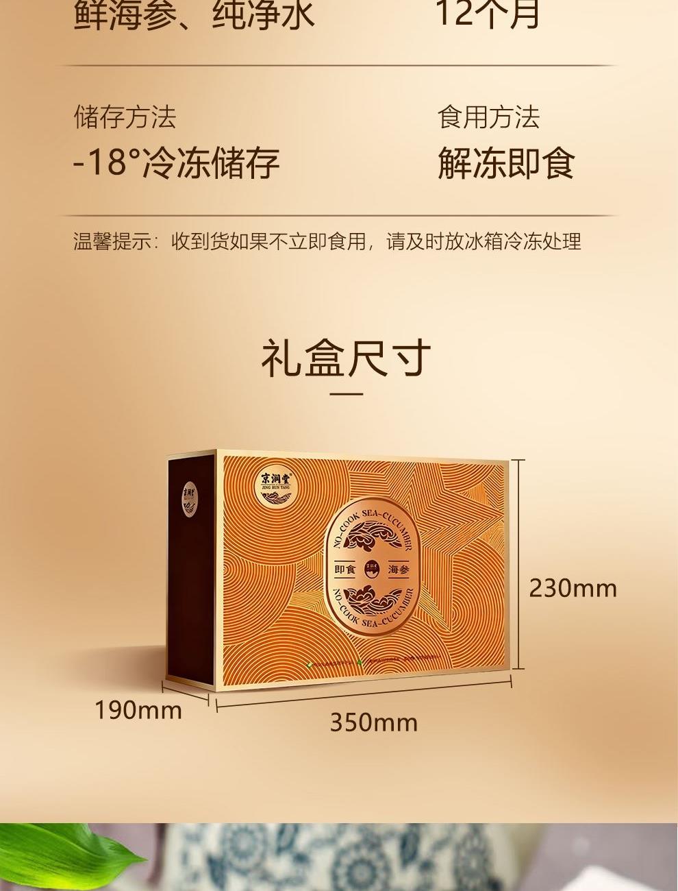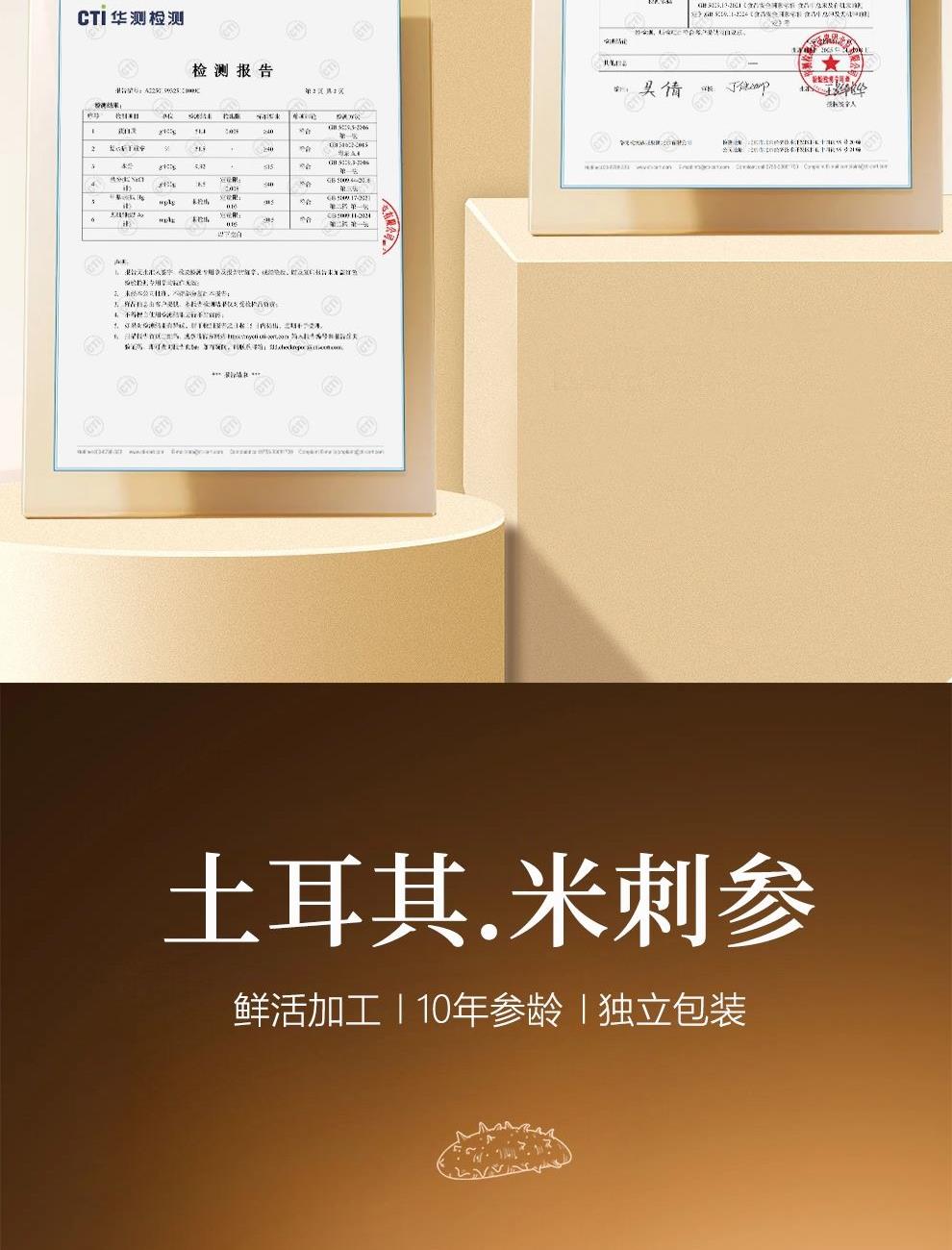 规格:米刺参600克(约18-22头) 卖点: 京润堂米刺参来自地中海海域,海参生长过程不进行人工干预,自然野生生长觅食。京润堂米刺参参龄5年以上,富含多种营养成分,如高蛋白含量,海参粘多糖, 维生素和多种微量元素,具有调节体质、抗疲劳、抗肿瘤等潜在功效。