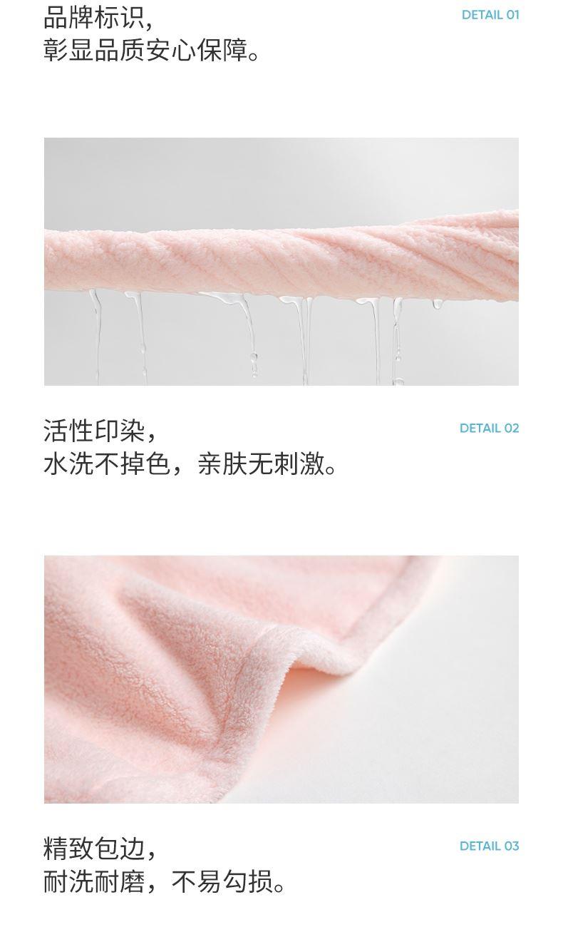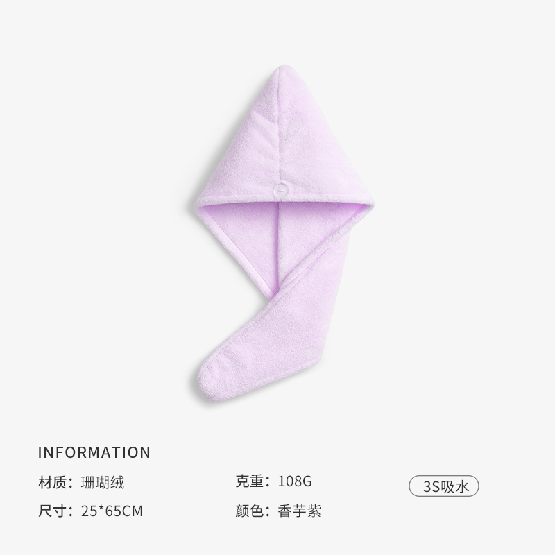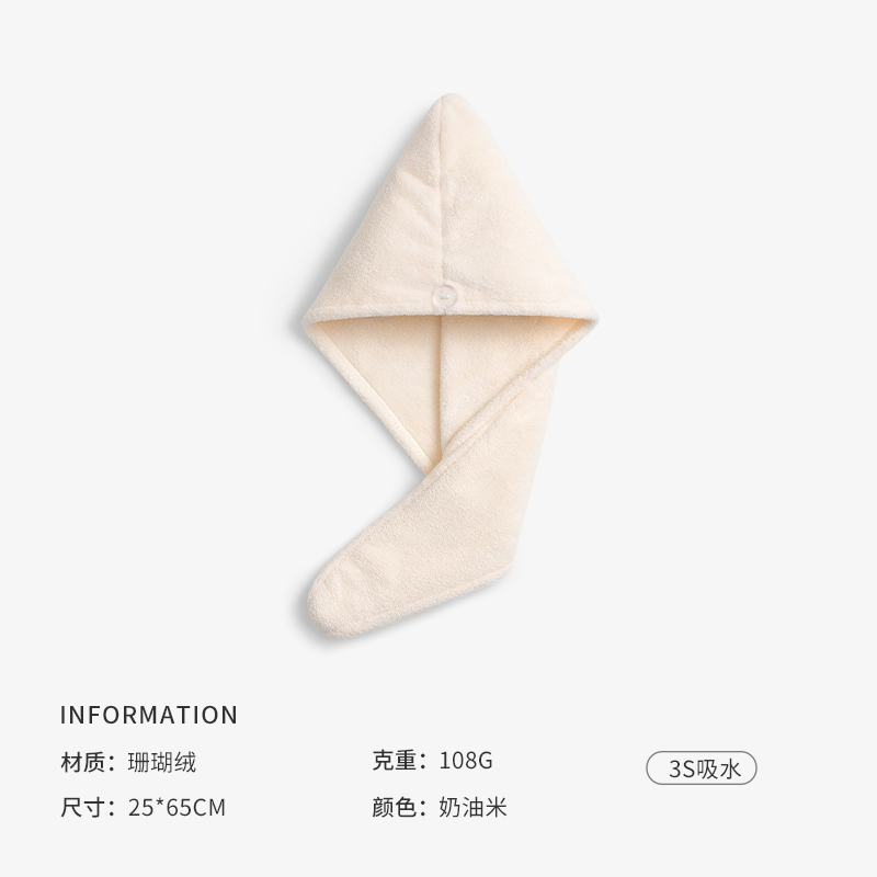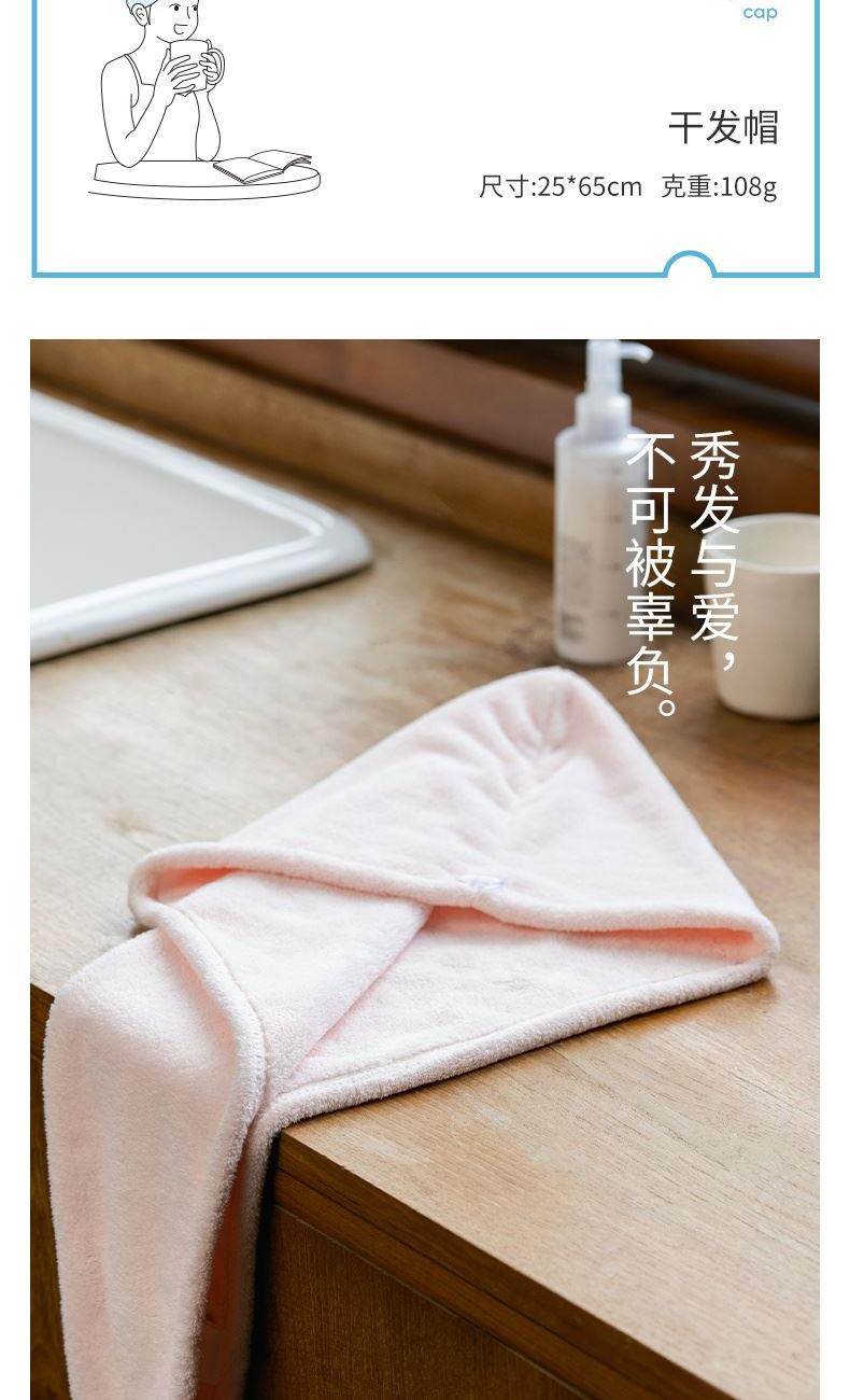 规格:25cm*65cm*1条 重量:108g/条*1条 颜色:蓝、粉、桃花粉、奶油米、晴空蓝、山岚绿、香芋紫、平安灰 材质:底纱:聚酯纤维 绒毛纱:聚酯/聚酰胺复合纤维(装饰部分除外) 平方克重:400 包装内容:静水干发帽 1条 1、采用加厚珊瑚绒面料,质地细腻,手感柔软,不易起球,不易掉色,吸水强劲。 2、加厚配置,加密长绒,吸水面积扩大,吸水力更足,让湿发在短时间内变得干爽 3、牢固纽扣设计,不易脱落,使用后方便悬挂。长尾设计,轻松包裹。