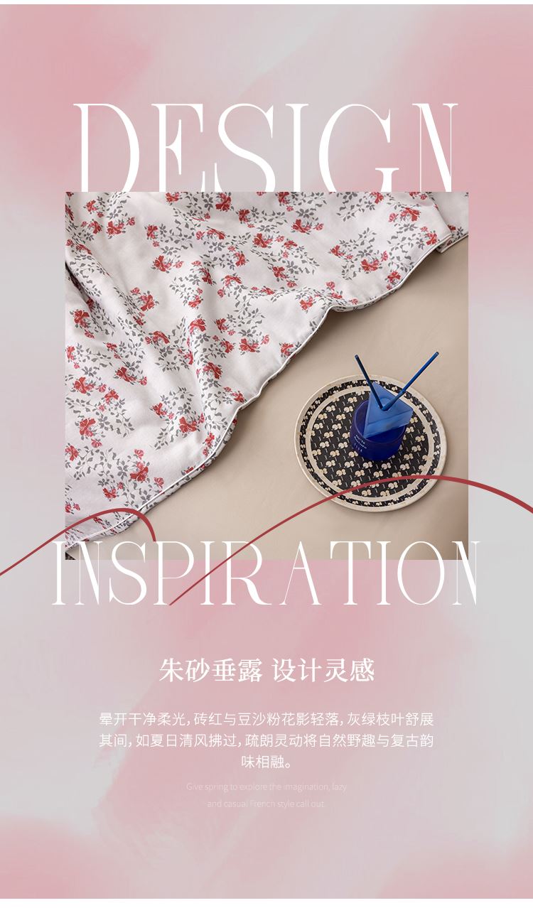 法国ELLEDECO全棉棉花夏被-朱砂垂露