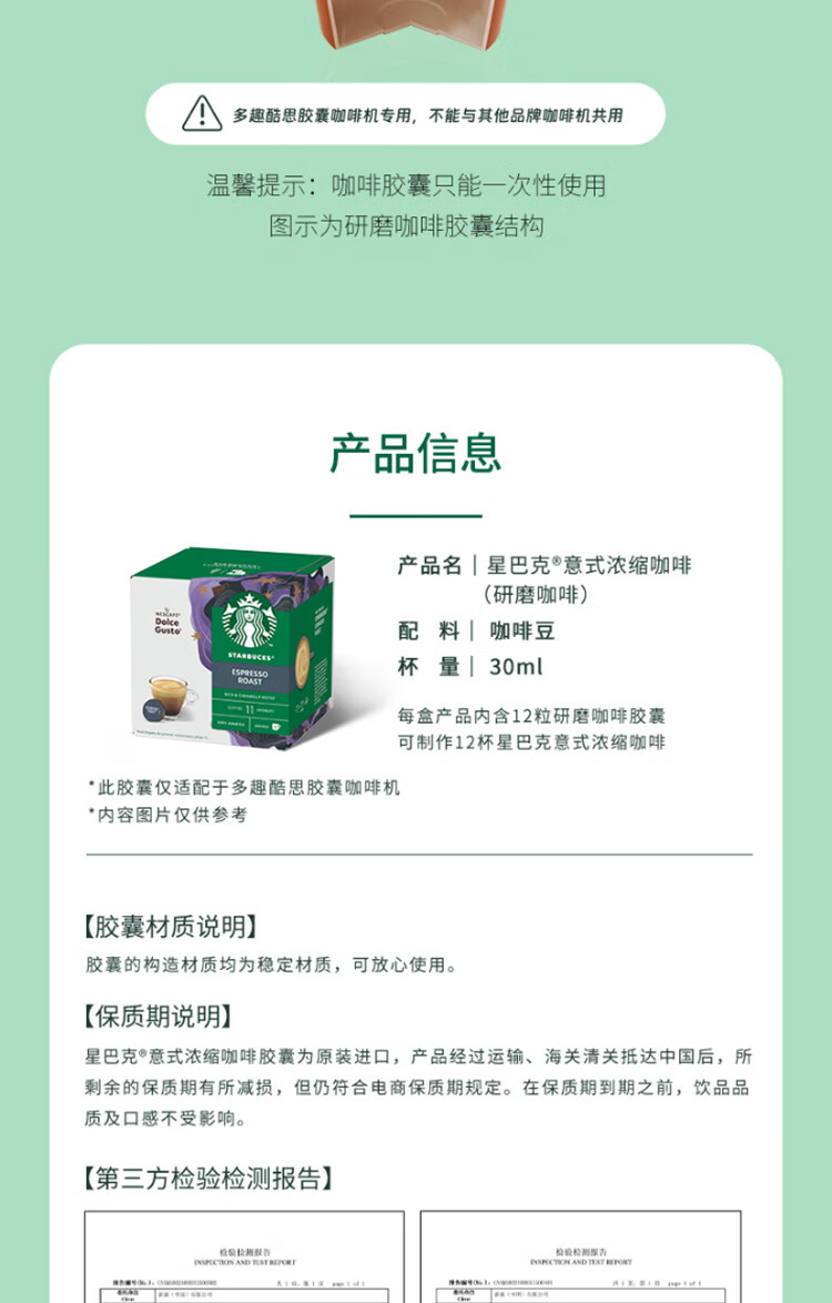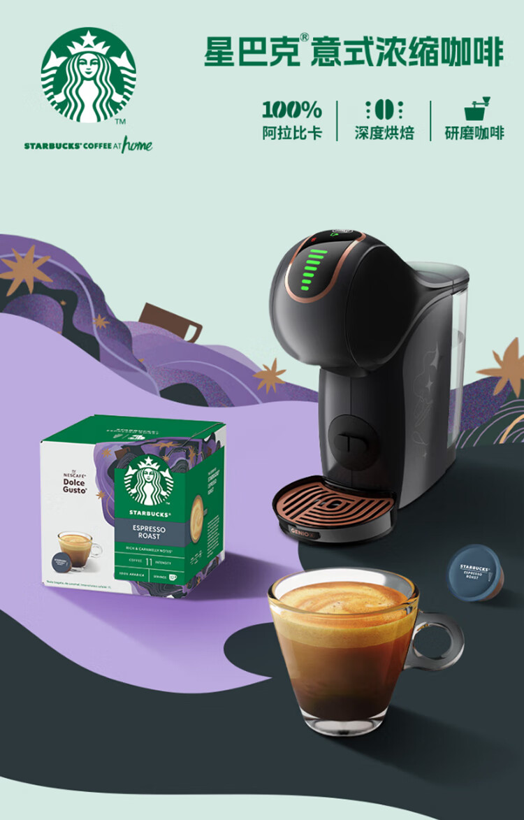 星巴克多趣酷思胶囊咖啡意式浓缩12颗适用多趣酷思咖啡机