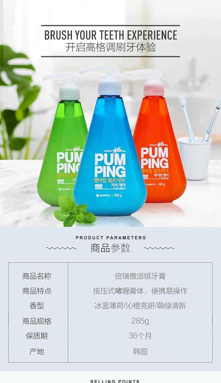 倍瑞傲派缤牙膏-沁橙亮妍285g+冰蓝薄荷285g按压式牙膏