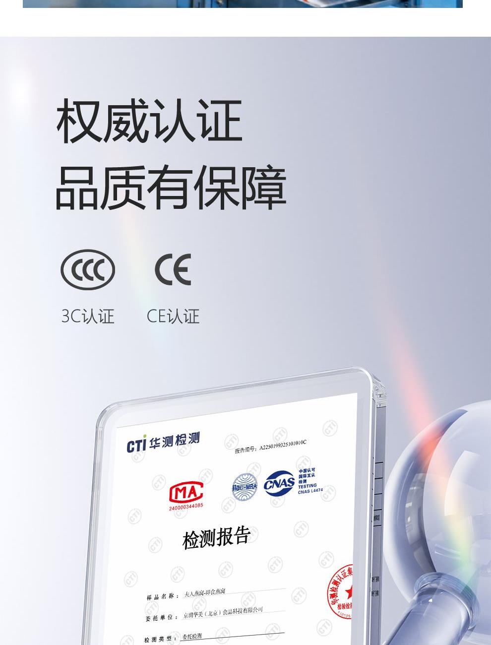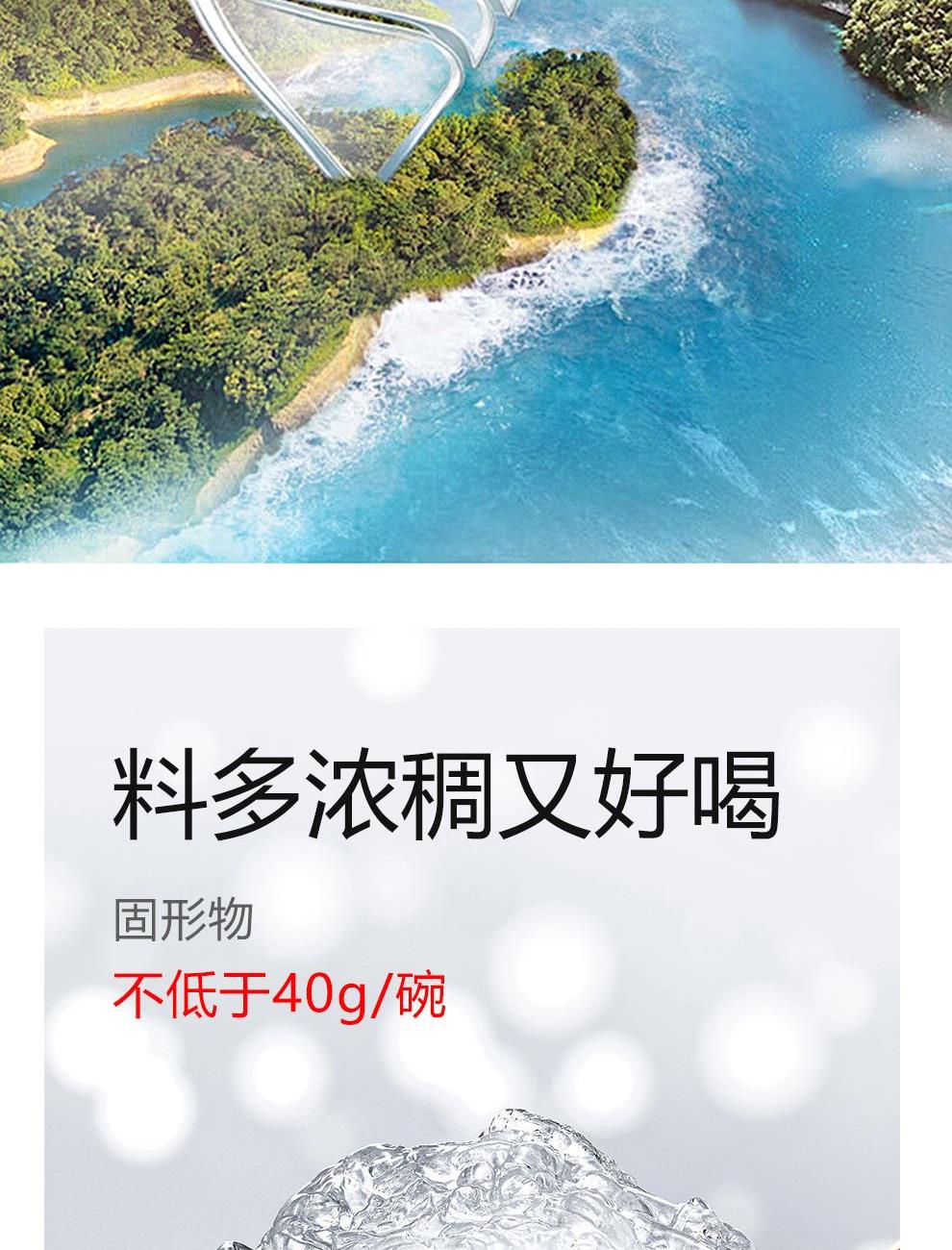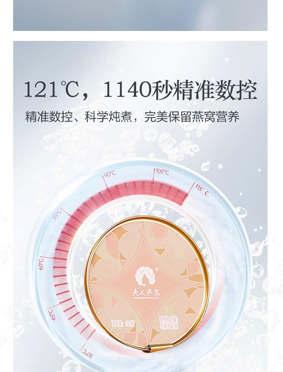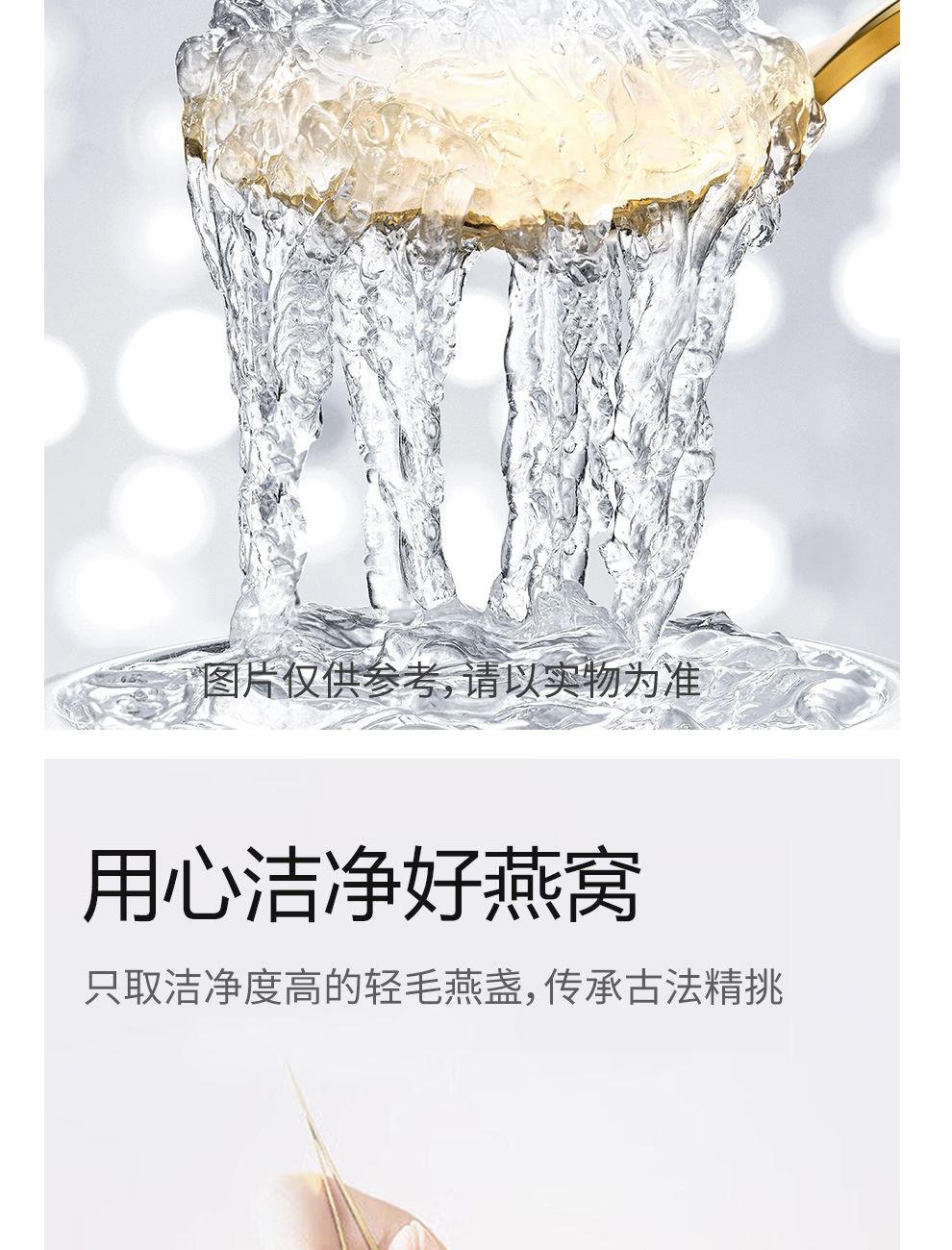 规格:648克(108克*6碗)、每碗不低于40克 卖点: 燕窝原料精选马来西亚、印尼森林雨季燕盏,洁净度更高,泡发率更好。121℃,1140秒数控,科学炖煮,保留燕窝营养,口感细腻爽滑。坚持 0添加 0色素 0防腐剂,孕妈和宝宝也可以放心享用。一瓶一码可溯源,开盖即食,开启滋补。
