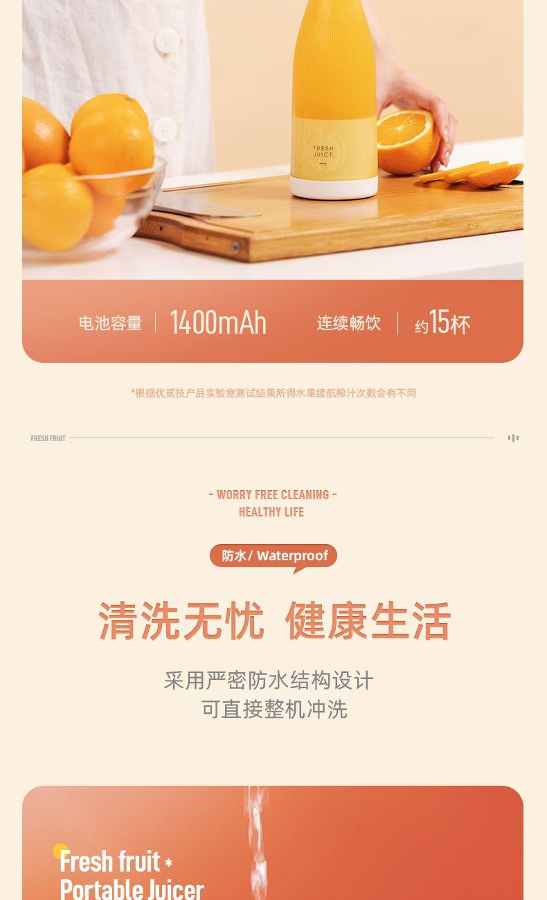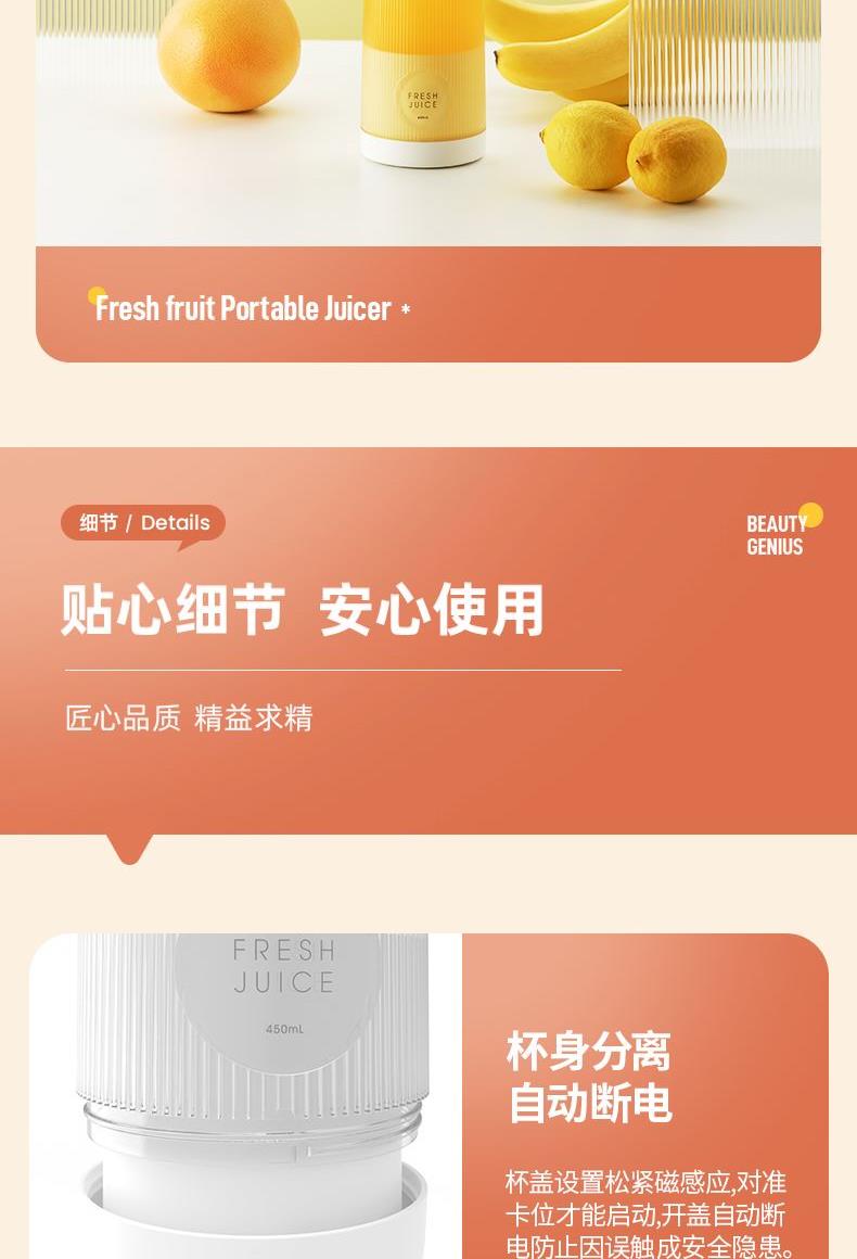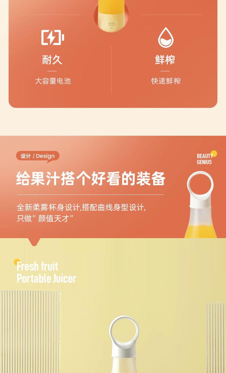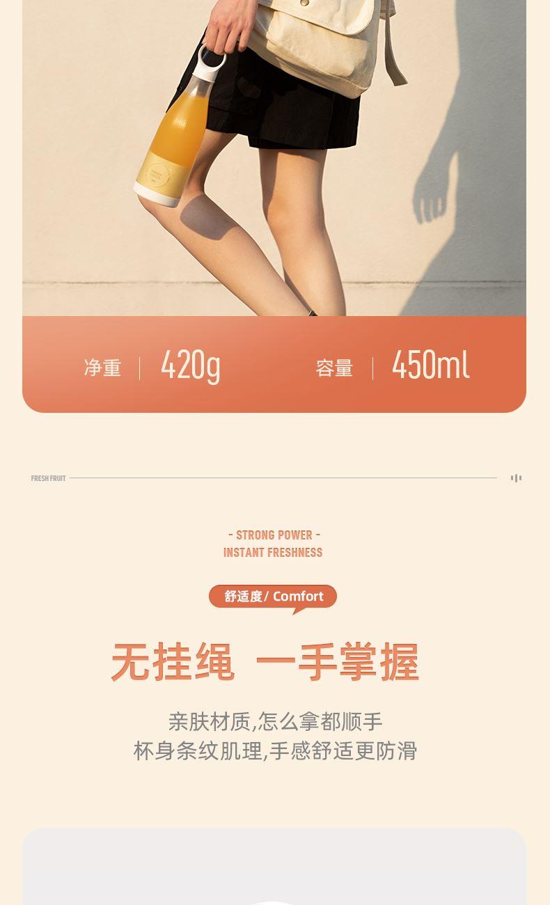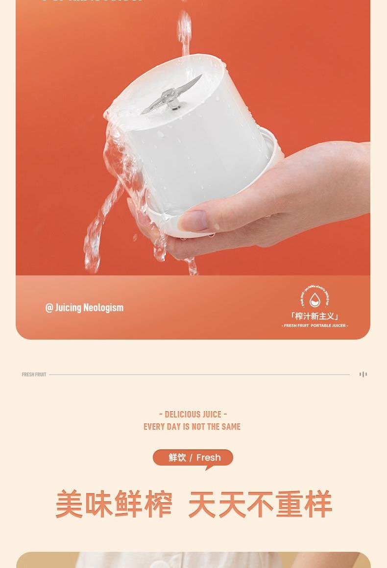 产品刀片:四叶刀头容 量:450ml电池电压:7.4V电池容量:1400mAh充电电压:5V=1A额定功率:50W 产品尺寸:82*82*285.5mm 包装尺寸:100*100*320mm 成品裸重(克):420g 毛重:577g 隐藏四页刀头 超轻握感,随身便携 无线充电,持久续航