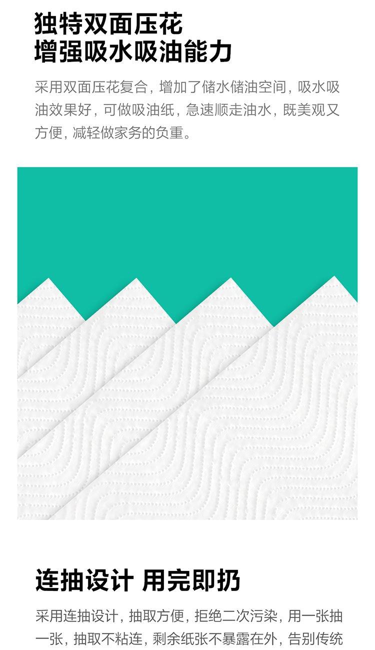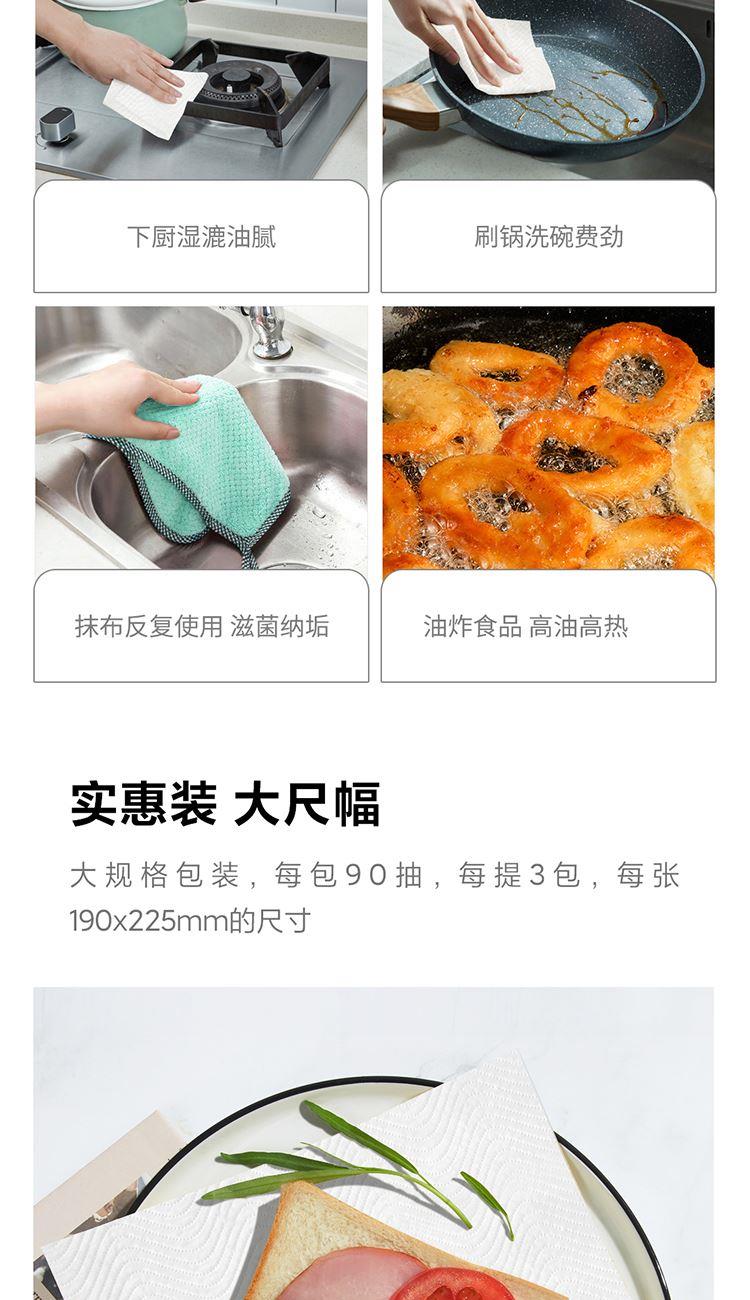 产品货号:223595 纸面规格:190*225mm(2层) 产品规格:90抽/包,3包/提 主要原料:原生竹浆 保 质 期:3年 产品卖点: 1.优选原生竹浆 健康环保 2.一包90抽,超值实惠装 3.吸水,吸油,干湿两用 4.连抽设计,用完即扔,拒绝二次污染