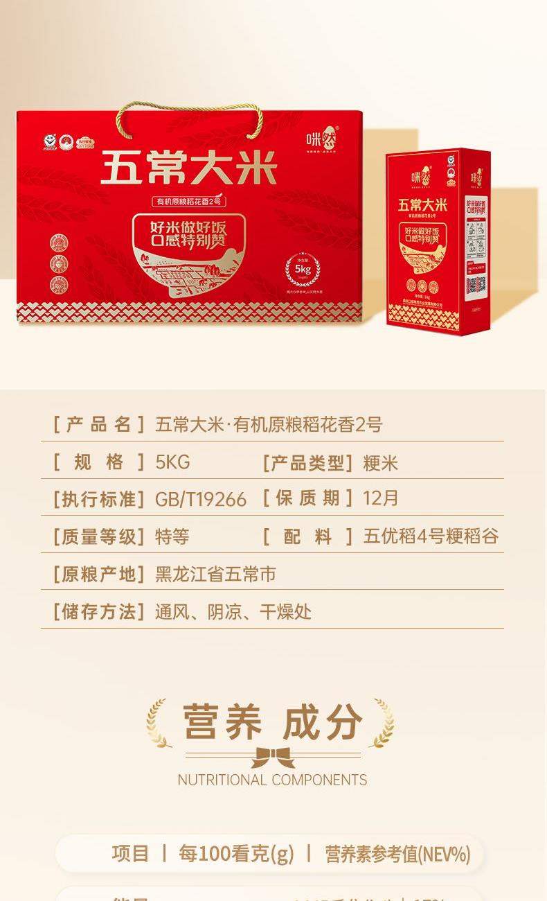 五常大米-有机原粮稻花香2号礼盒5kg