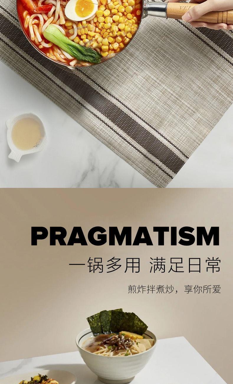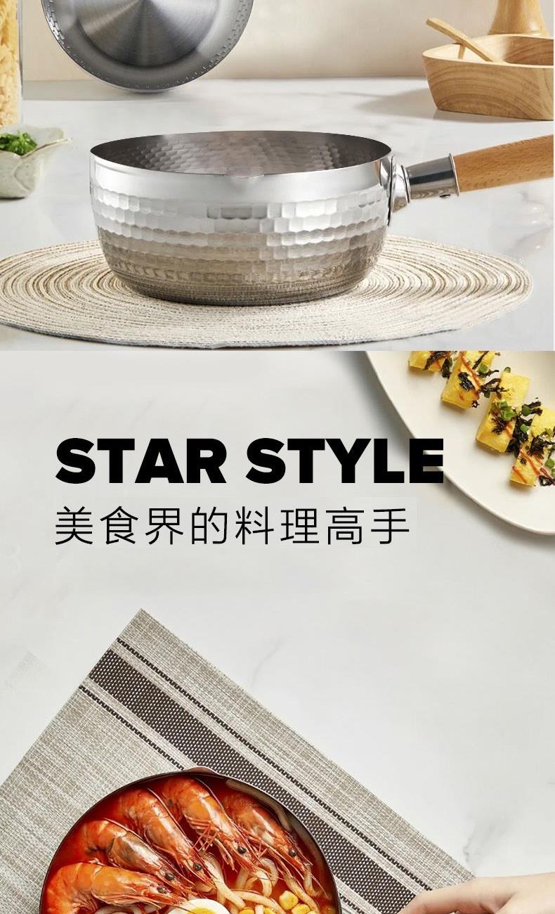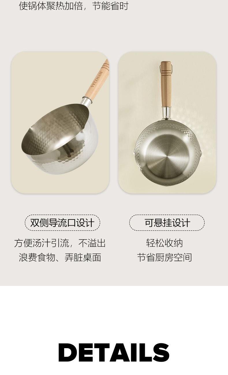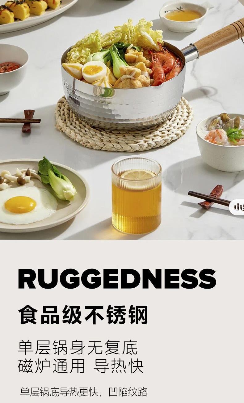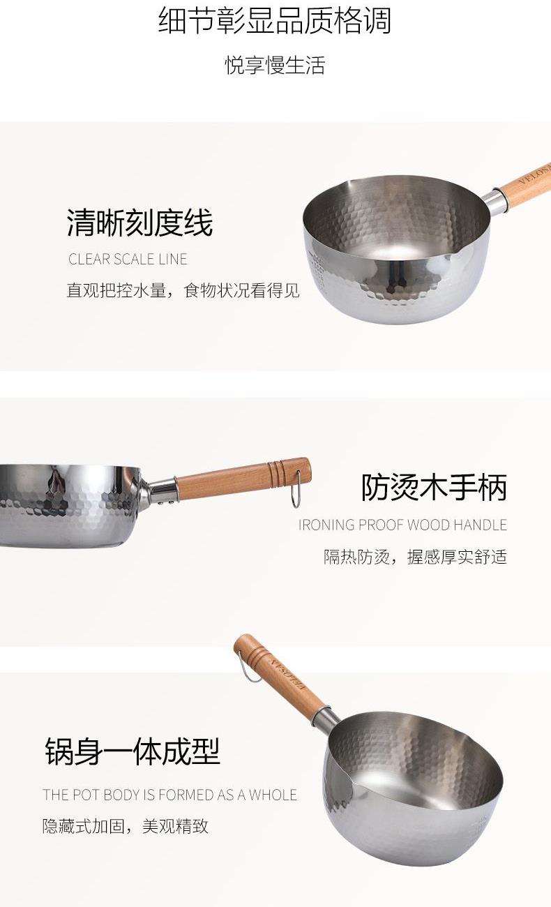 【型号】VE014 【SKU】VE01401 【材质】不锈钢 【规格】18cm 【净重】470g 【毛重】700g 【包装方式】邮购箱 【外箱尺寸】350*195*110mm 【颜色】 银色 食品级不锈钢材质,安全不粘; 一锅多用,不挑炉灶; 小巧轻盈,使用方便; 双向导流口,倾倒便利省心。