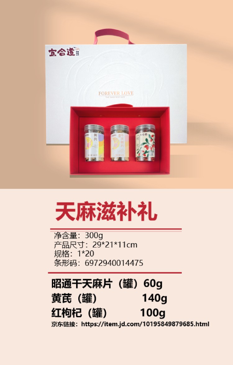 送礼佳品 内含: 昭通干天麻片(罐)60g 黄芪(罐) 140g 红枸杞(罐) 100g